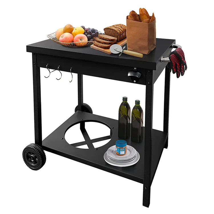 바베큐 트롤리 피자 오븐 테이블 다기능 조리용 스테인리스 롤링 준비 테이블 그릴 트롤리 바베큐 휴대용