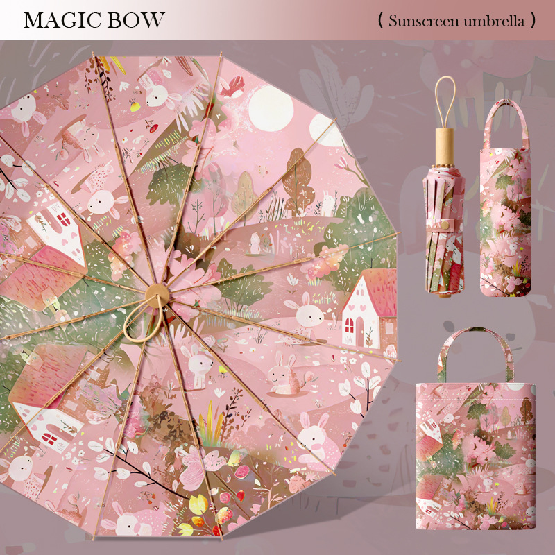 여성용 24본 이중층 이중 꽃 파라솔, 비가 오나 눈이 오나, 자외선 차단 및 자외선 차단, 고급 맞춤형 로고