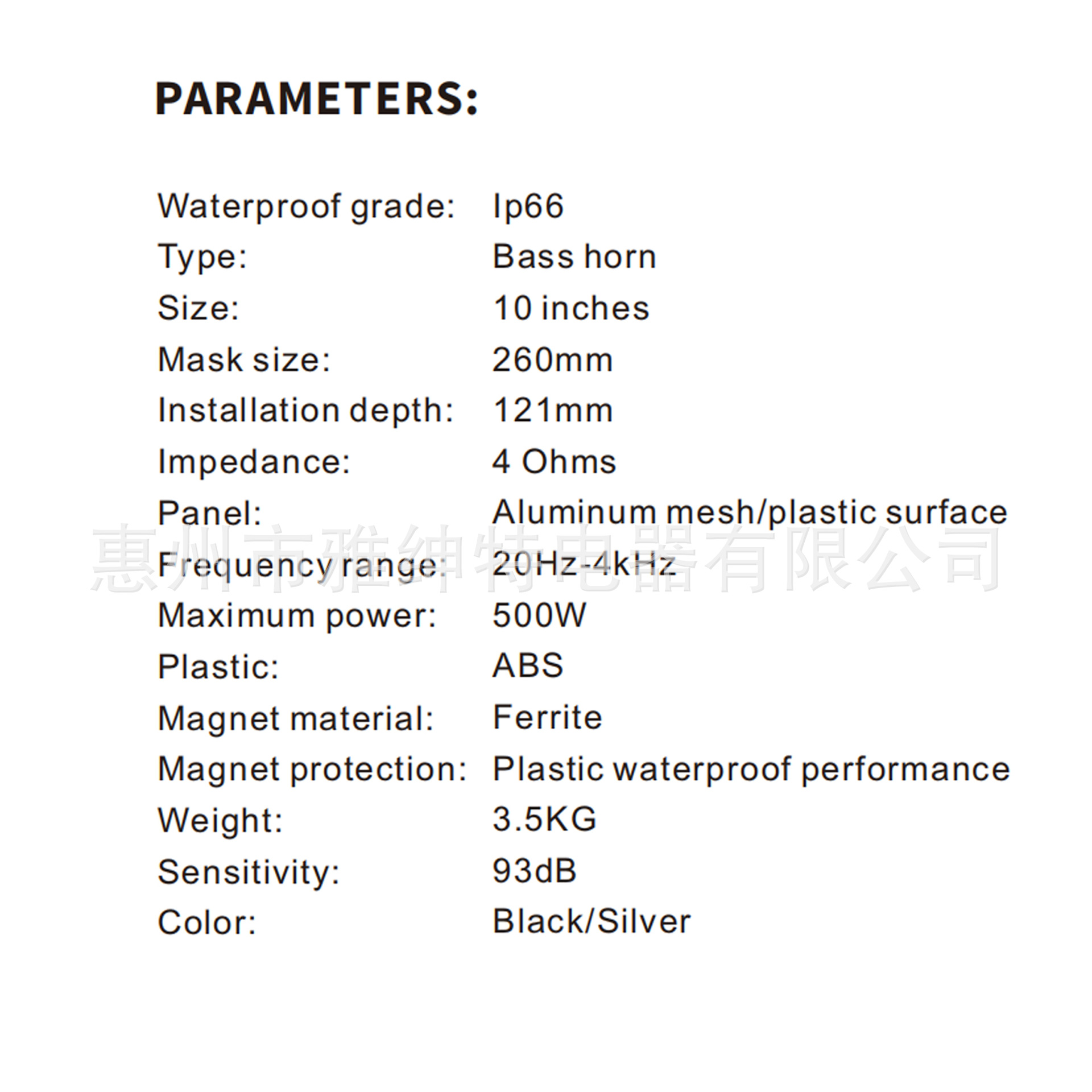 2025 고출력 500W 실외 방수 10 서브우퍼 스피커는 모든 지형 차량 및 보트 장착에 적합합니다.