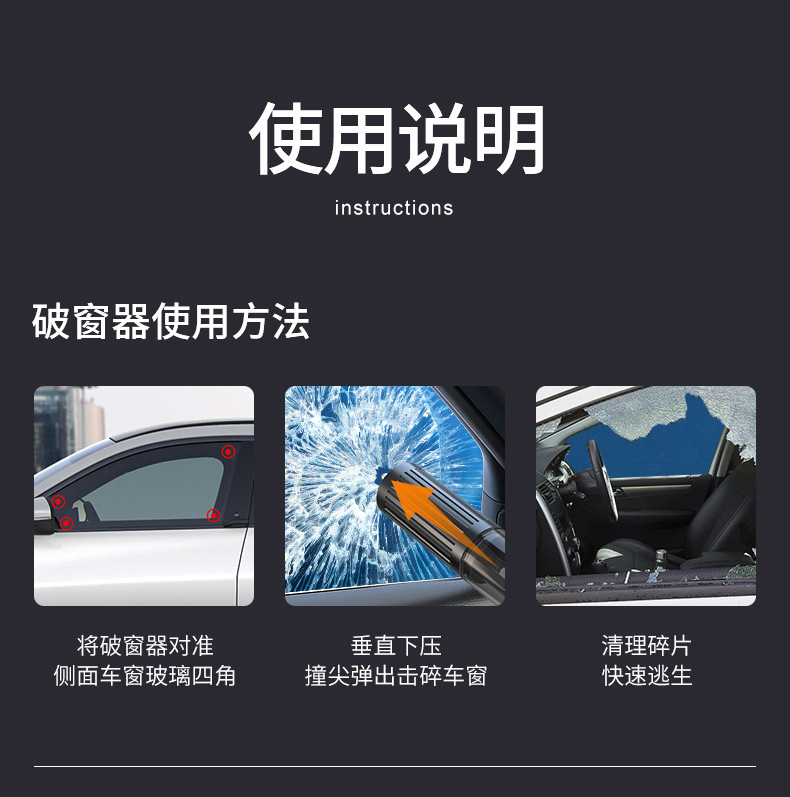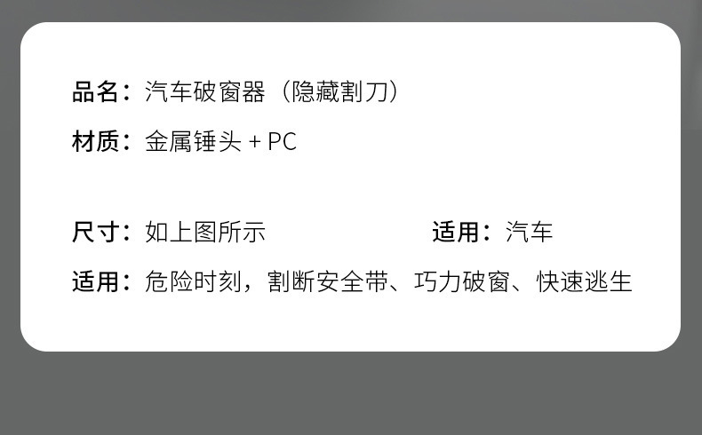 자동차 창문 파괴 도구, 1초 비상 자동차 다기능 충격 핀, 유리 자동차 탈출 구명 망치, 자동차 내부 자동차