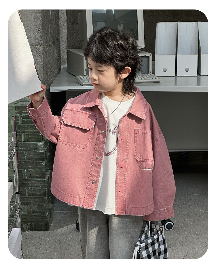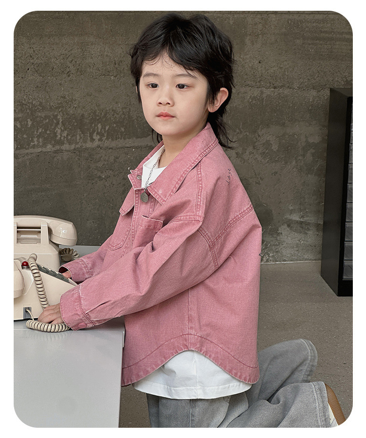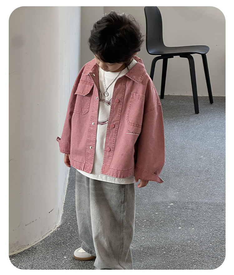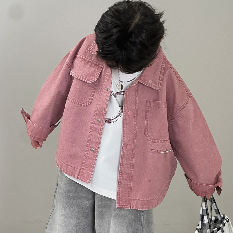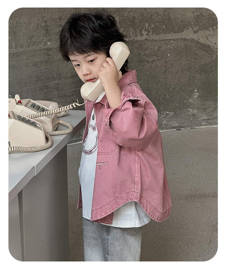 소년 데님 셔츠 도파민 코트 라펠 셔츠 봄 어린이 짧은 복고풍 코튼 재킷 봄 옷스토어 가기