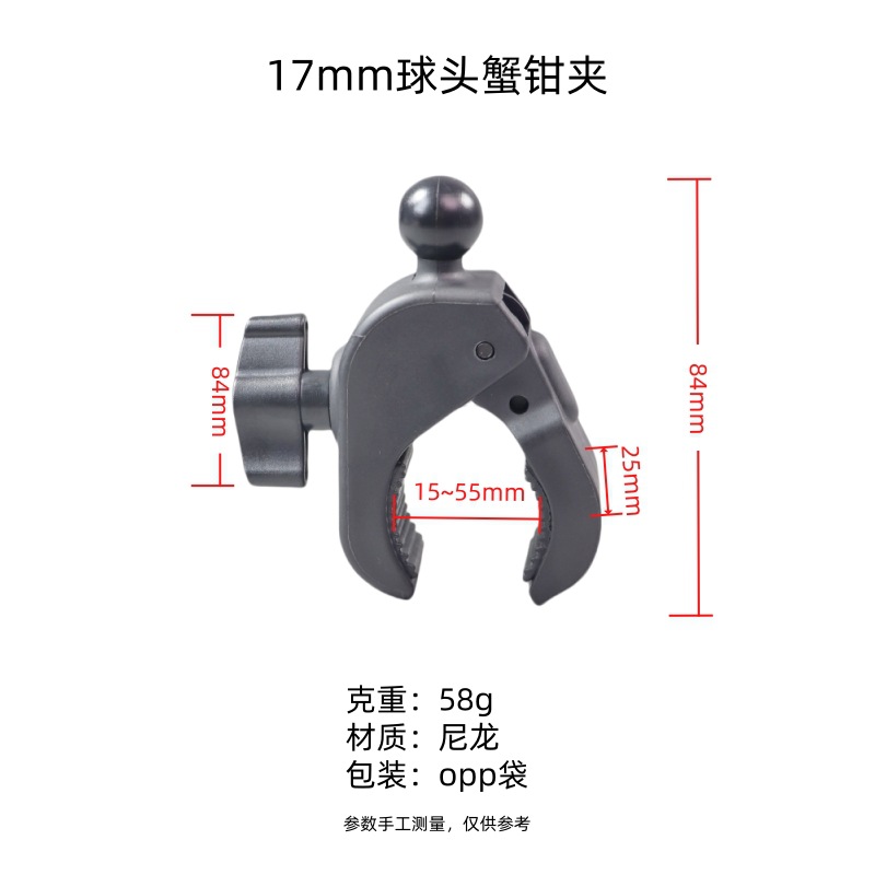 크랩 클램프 17mm 볼 헤드 휴대 전화 홀더 기본 원형 튜브 클립 자전거 라이브 방송 홀더 액세서리