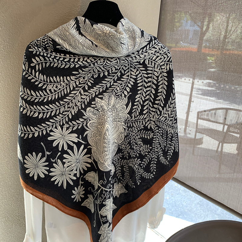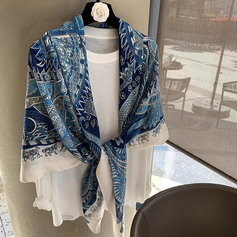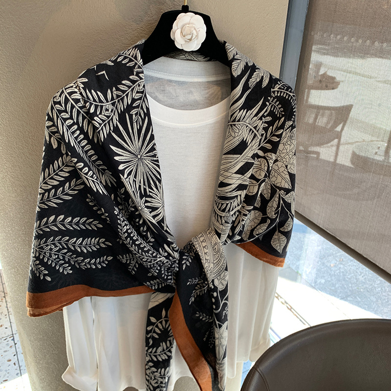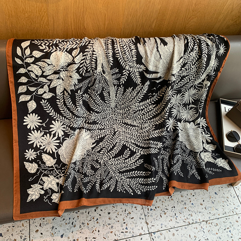 여성을위한 열대 우림 대형 사각형 스카프 2025 봄과 여름 새로운 스타일 스카프 에어컨 룸 외부 목도리 여행 태양 보호 실크 스카프