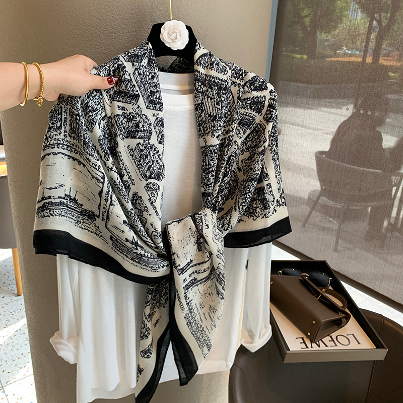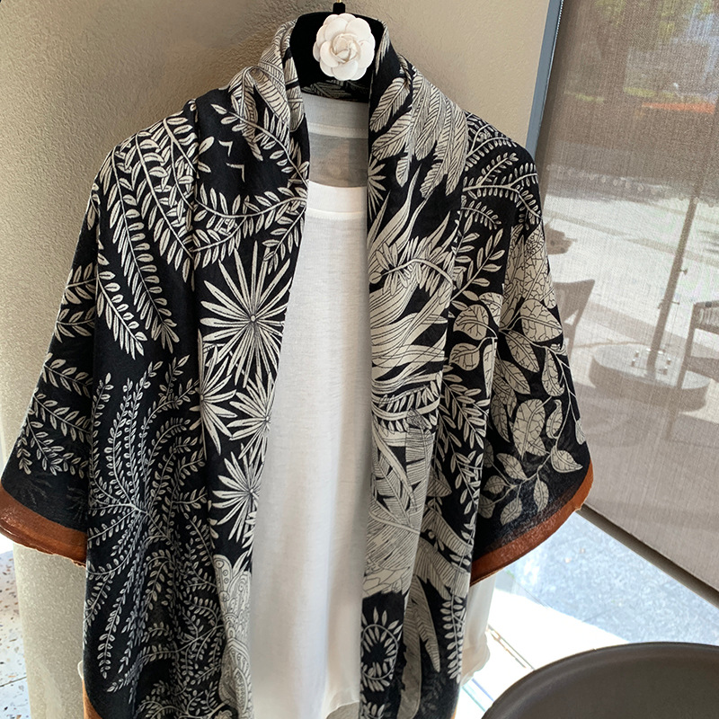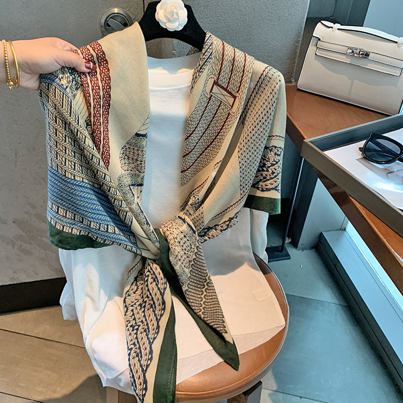 여성을위한 열대 우림 대형 사각형 스카프 2025 봄과 여름 새로운 스타일 스카프 에어컨 룸 외부 목도리 여행 태양 보호 실크 스카프스토어 가기
