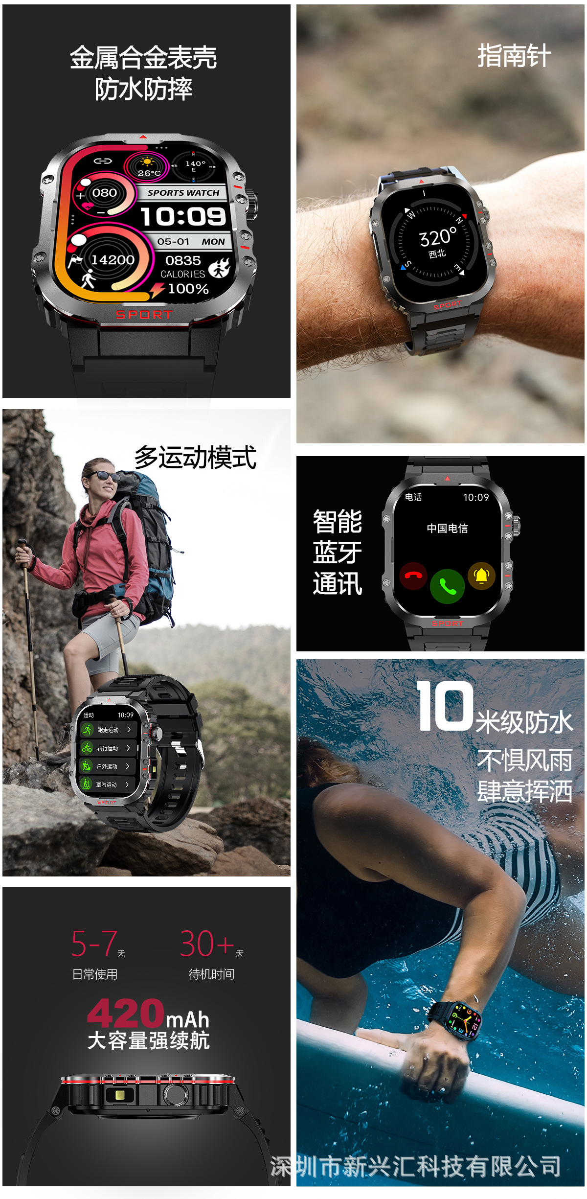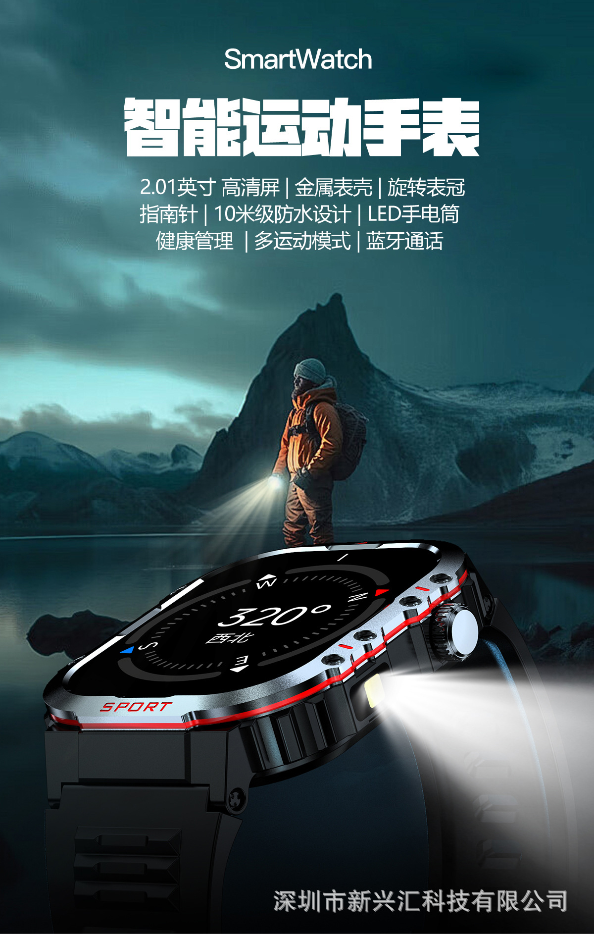 국경을 넘는 프라이빗 모델 H08 스마트워치 10m 방수 블루투스 통화 LED 손전등 재고 도매 공장 직판