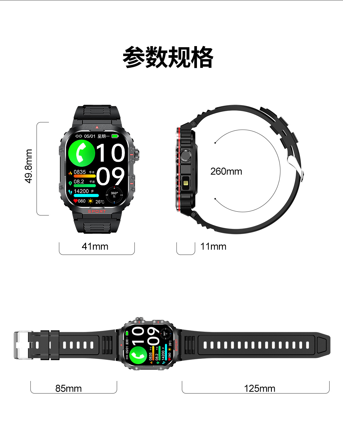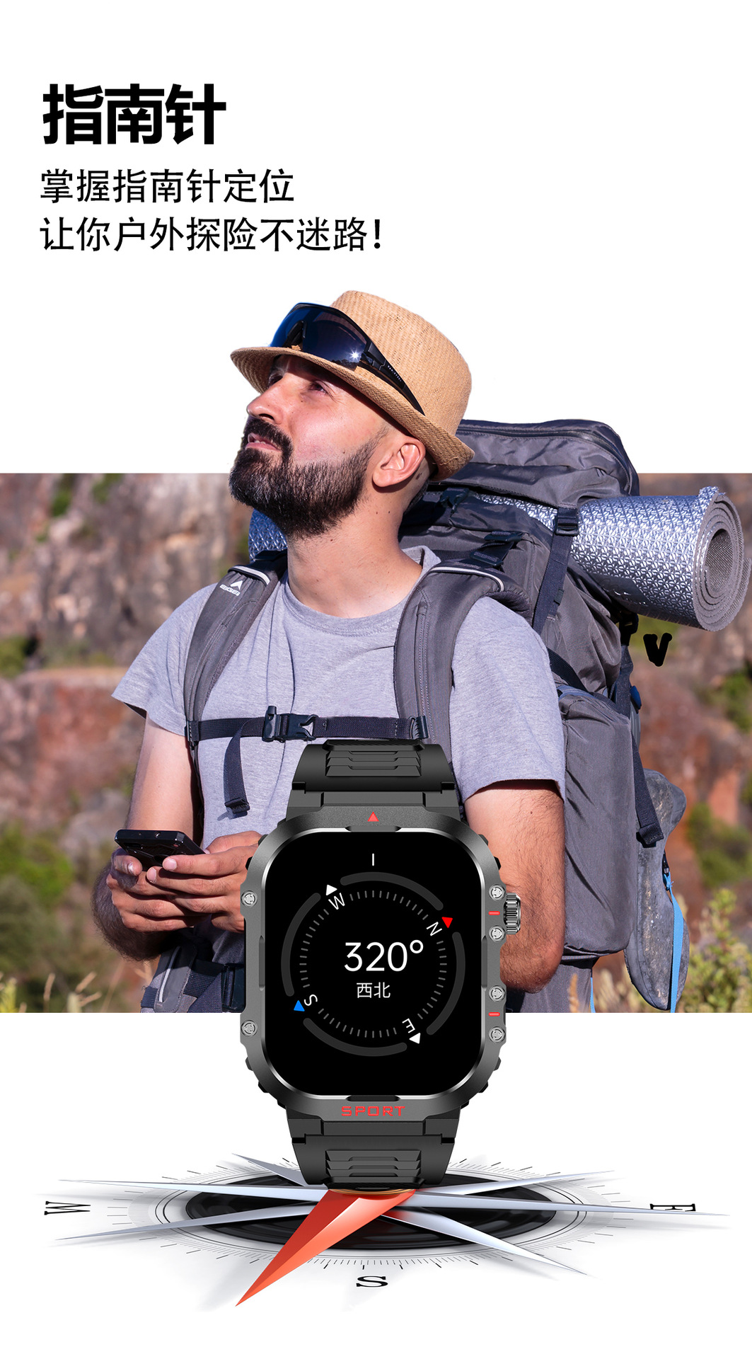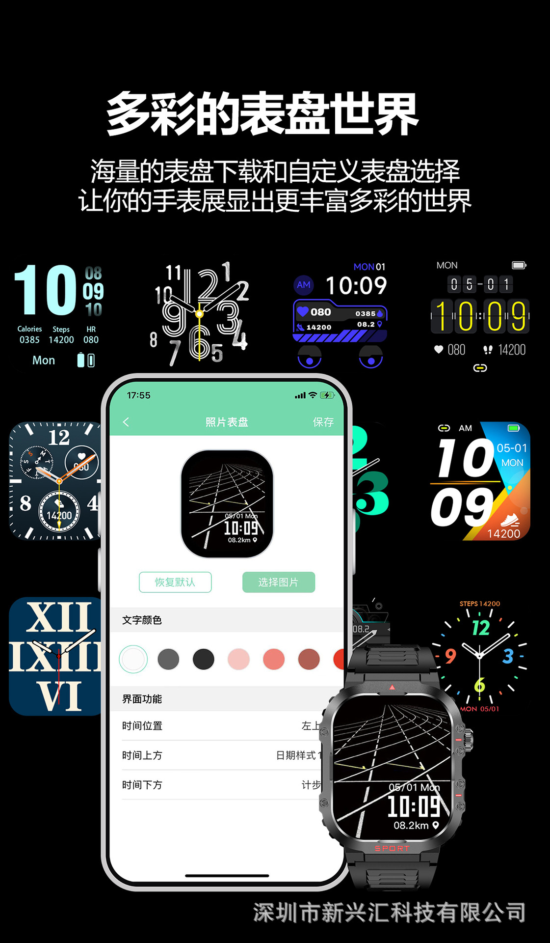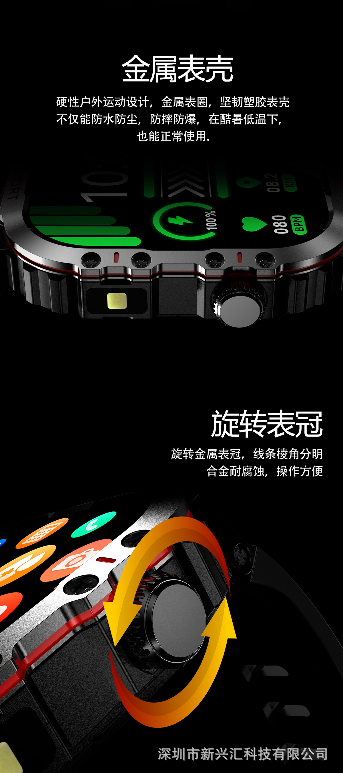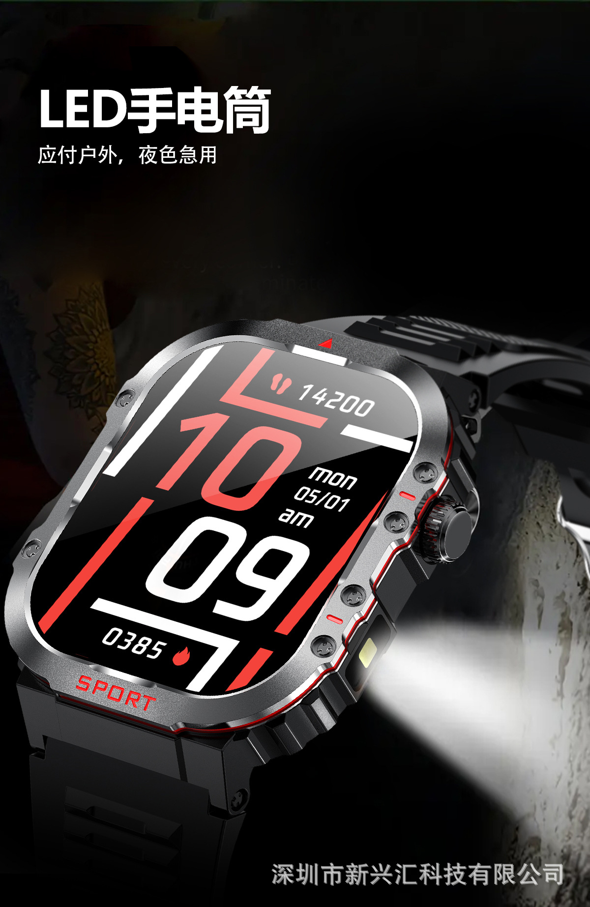 국경을 넘는 프라이빗 모델 H08 스마트워치 10m 방수 블루투스 통화 LED 손전등 재고 도매 공장 직판스토어 가기