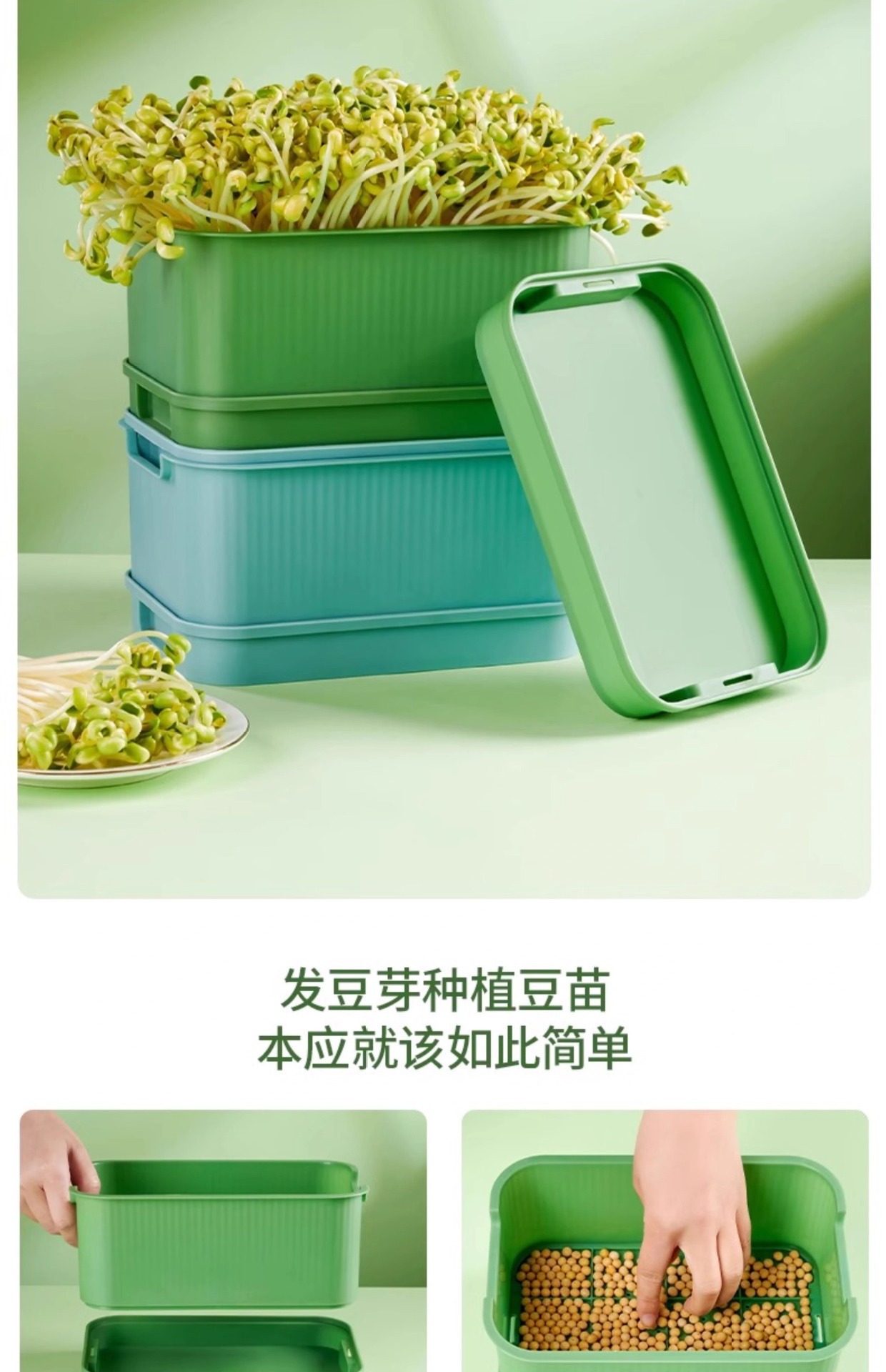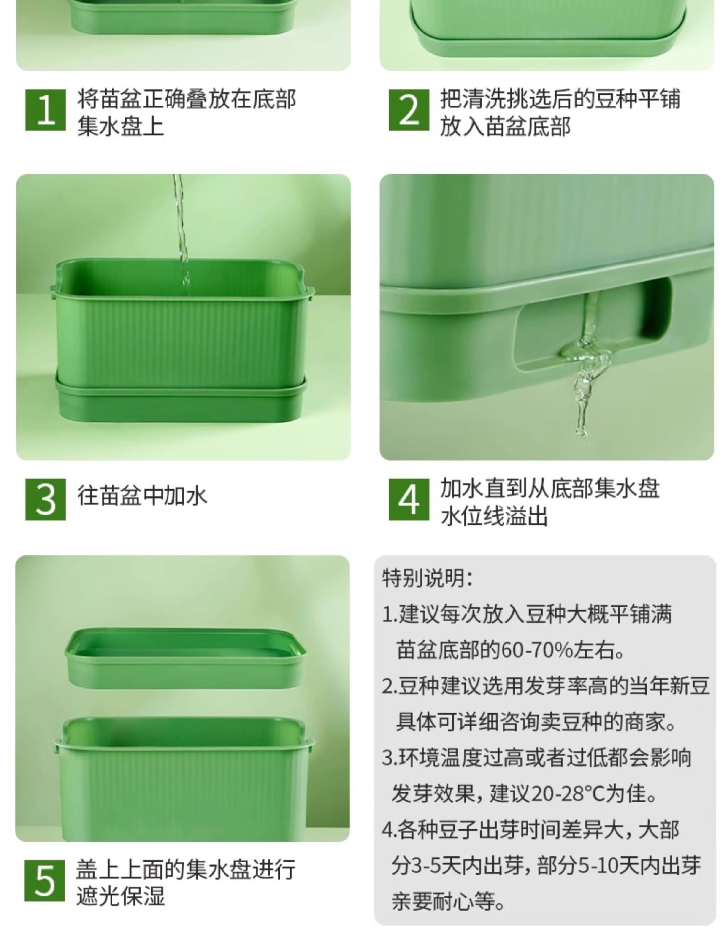 모발발아용기, 콩나물용기, 노란콩과 녹콩나물용기, 무토양재배, 수경재배트레이, 묘목트레이, 콩나물트레이, 콩나물재배용기