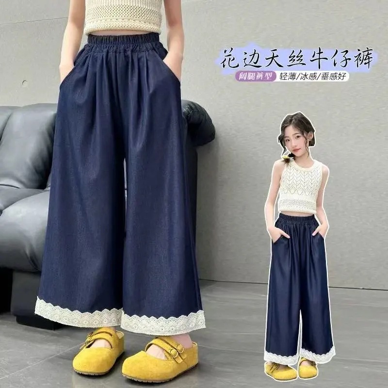 여름 소녀 청바지 2025 새로운 어린이 여름 레이스 소녀 중대형 어린이 느슨하고 달콤한 얇은 스타일