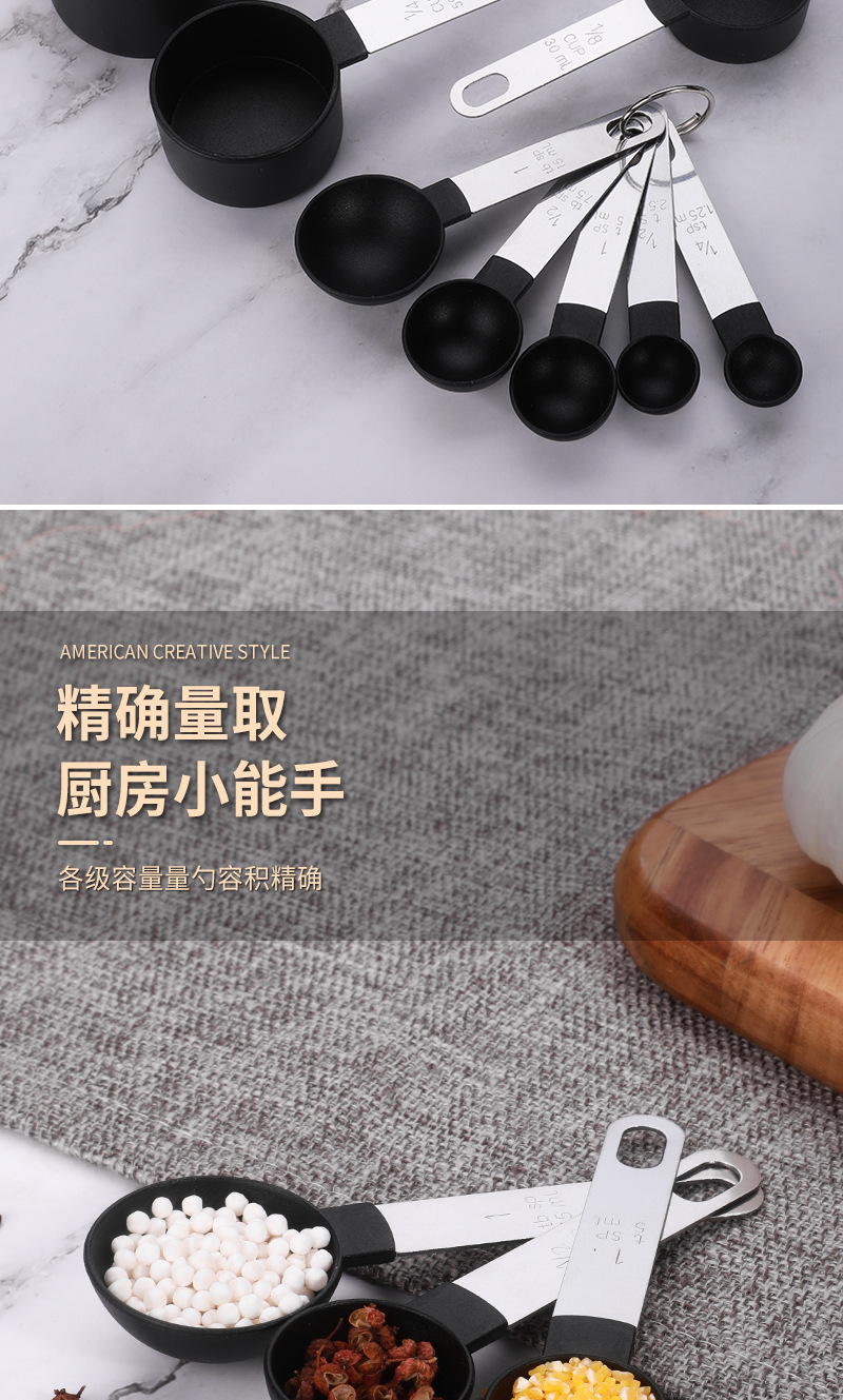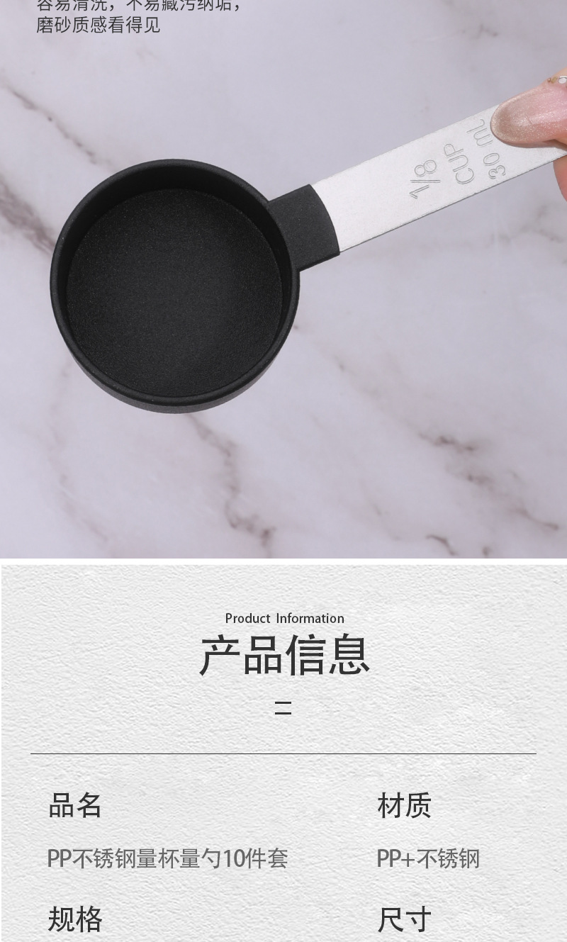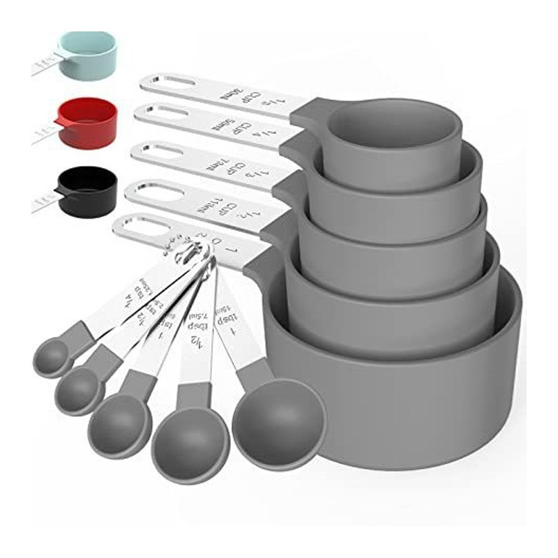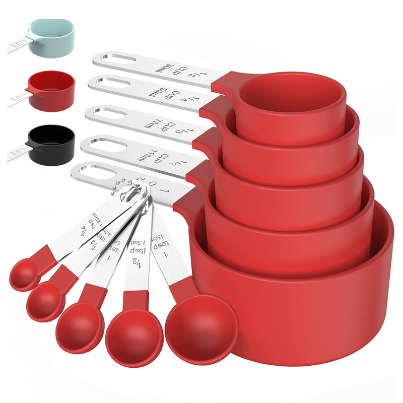 스테인레스 스틸 손잡이 베이킹 도구 측정 숟가락 측정 컵 10 피스 세트 플라스틱 측정 숟가락 세트 주방 가제트