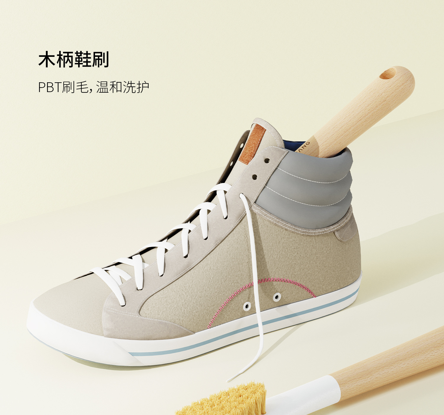 • 부드러운 강모 신발 브러시 - 신발 갑피를 손상시키지 않습니다.