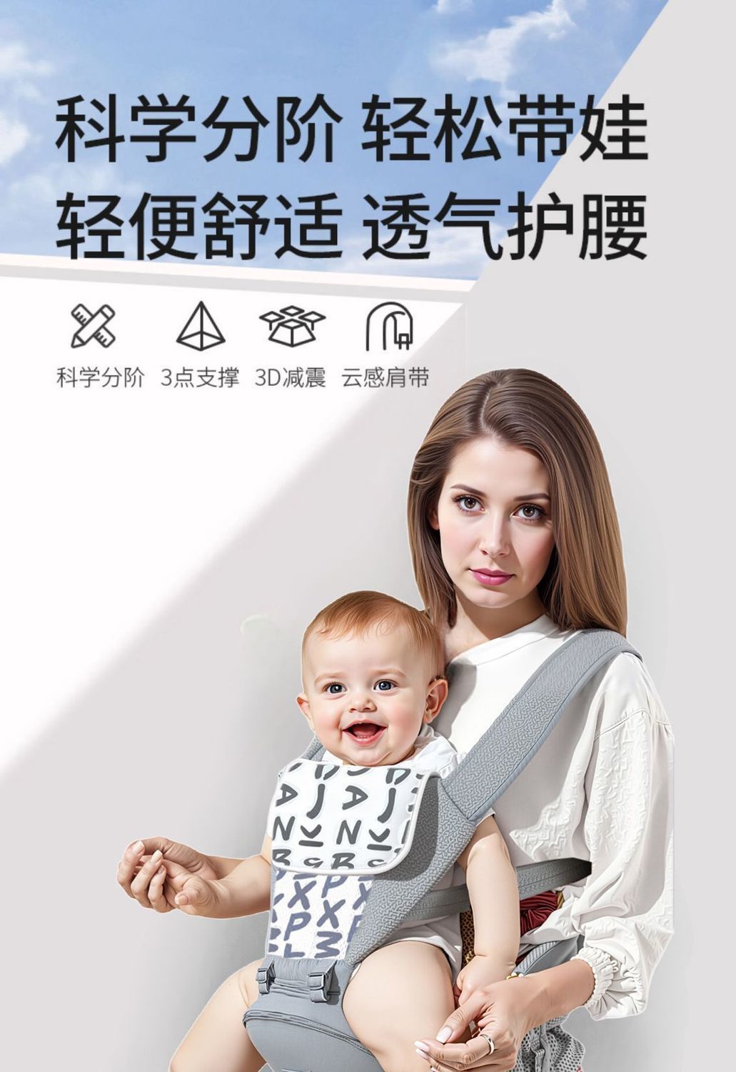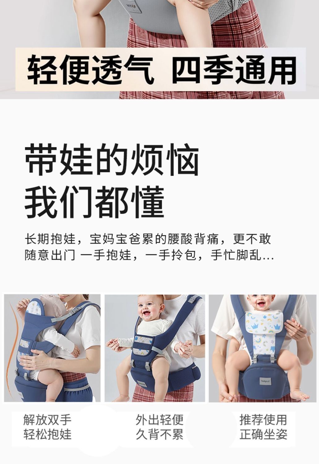 아기용 허리스툴, 가볍고 사계절 다기능 아기띠, 아기 외출 전후 겸용 허리스툴, 투인원