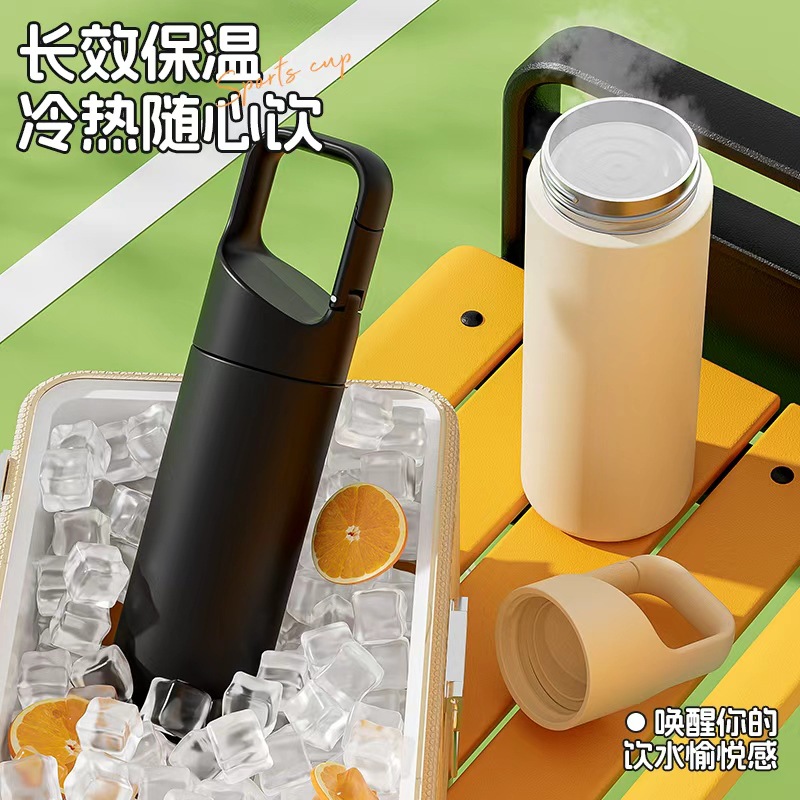 창의적인 휴대용 보온병 컵, 남성과 여성을 위한 고급스러운 보온 및 보냉 손잡이 스포츠 컵, 광고 선물 물컵스토어 가기