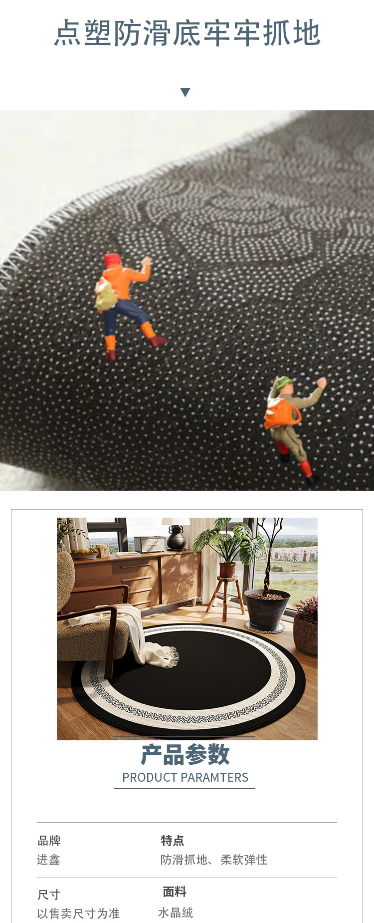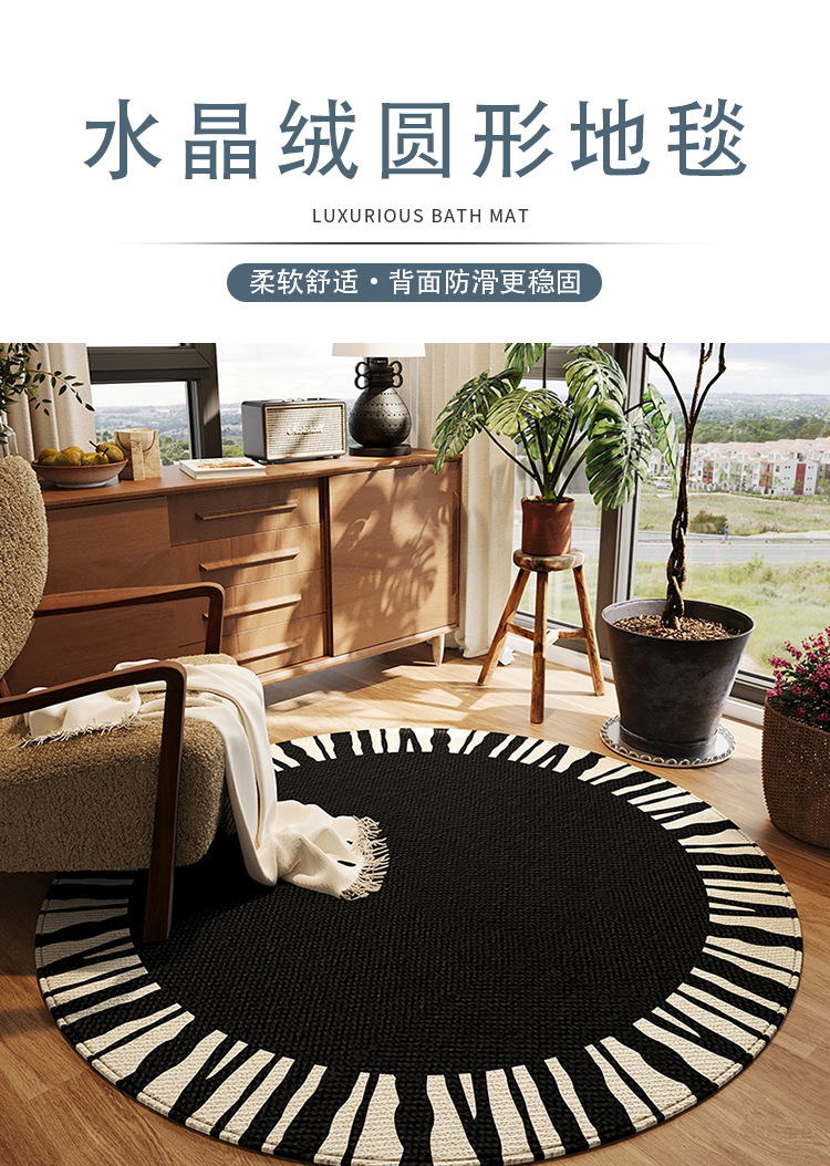 국경 간 도매 라운드 카펫 거실 넓은 지역 완전히 덮여 흡수성 커피 테이블 담요 얼룩 방지 및 관리하기 쉬운 크리스탈 벨벳 카펫