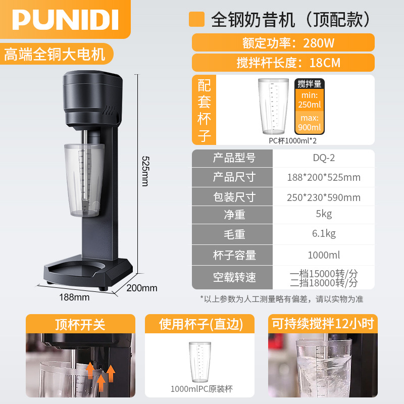 Punidi DQ-1 밀크 티 밀크 폼 믹서 밀크 쉐이크 기계 상업용 밀크 티 샵 완전 자동 전기 폼 쉐이커