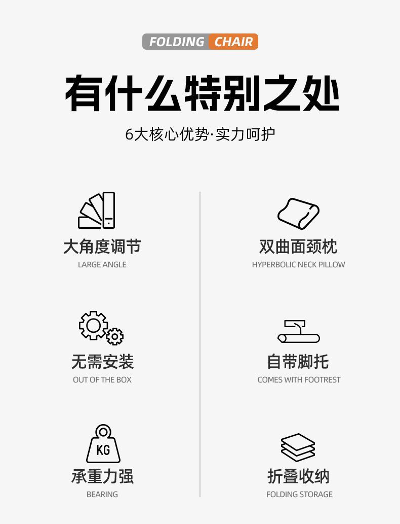 • 그레이 의자 - 사각 튜브 + 발판 + 머리 받침대 - 9단계 조절