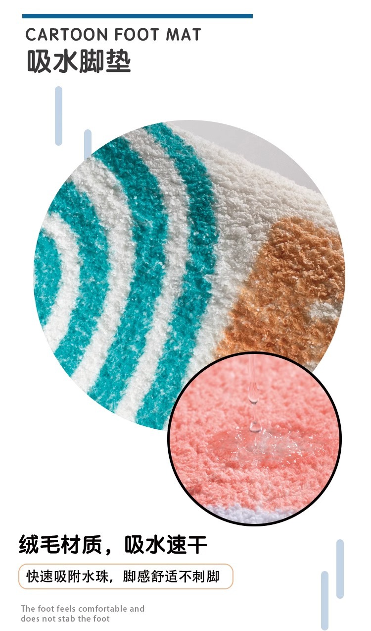 만화 모조 캐시미어 욕실 바닥 매트, 흡수성, 시원함, 먼지 방지, 관리 용이, 미끄럼 방지 매트, 욕실 문 발 매트