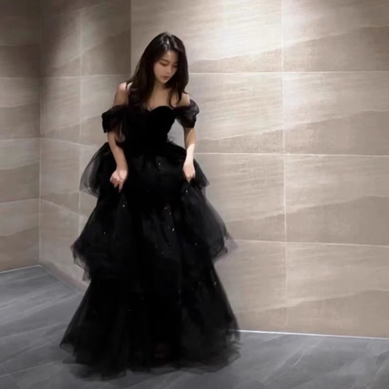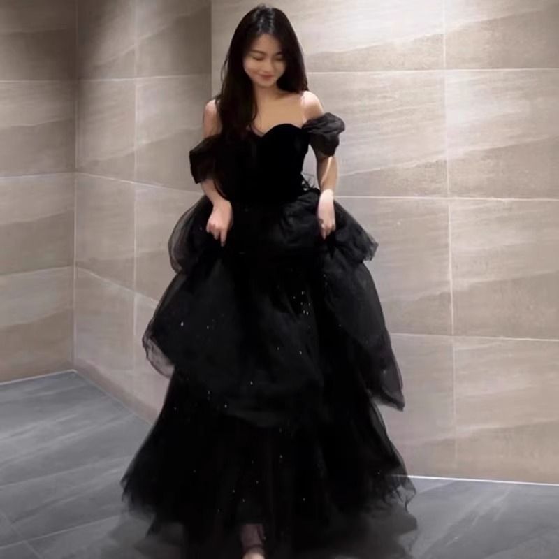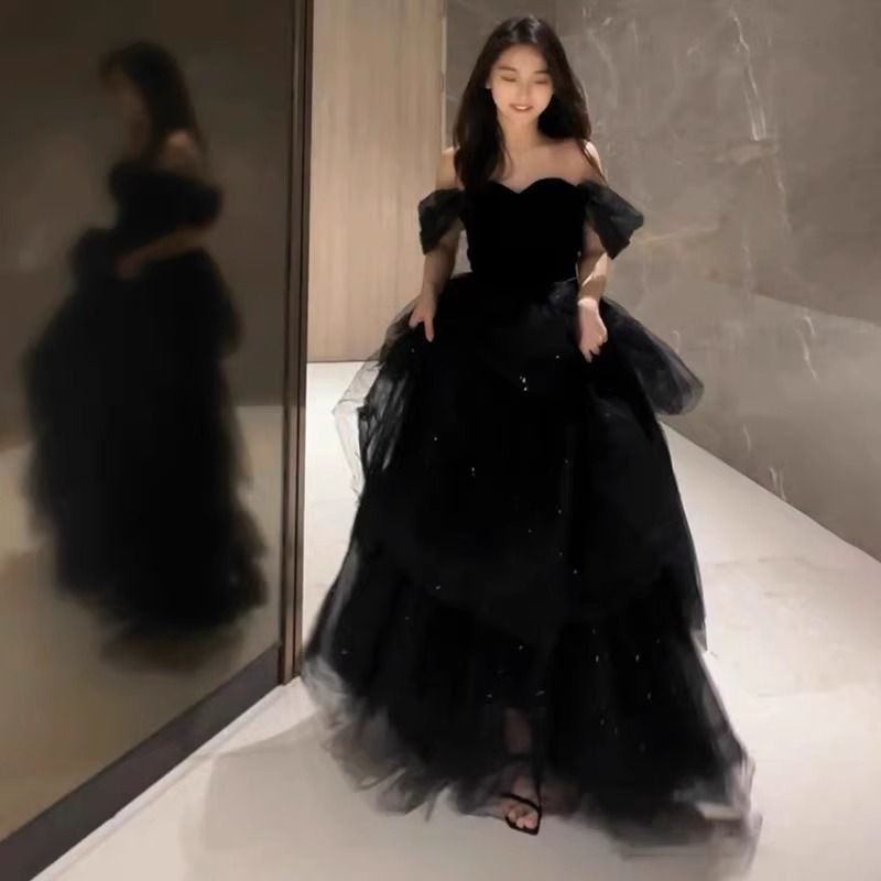 이브닝 드레스, 공주 드레스, 블랙 라이트 럭셔리 틈새 성인식, 생일, 보컬 아트 시험 공연 드레스, 튜브탑 연회