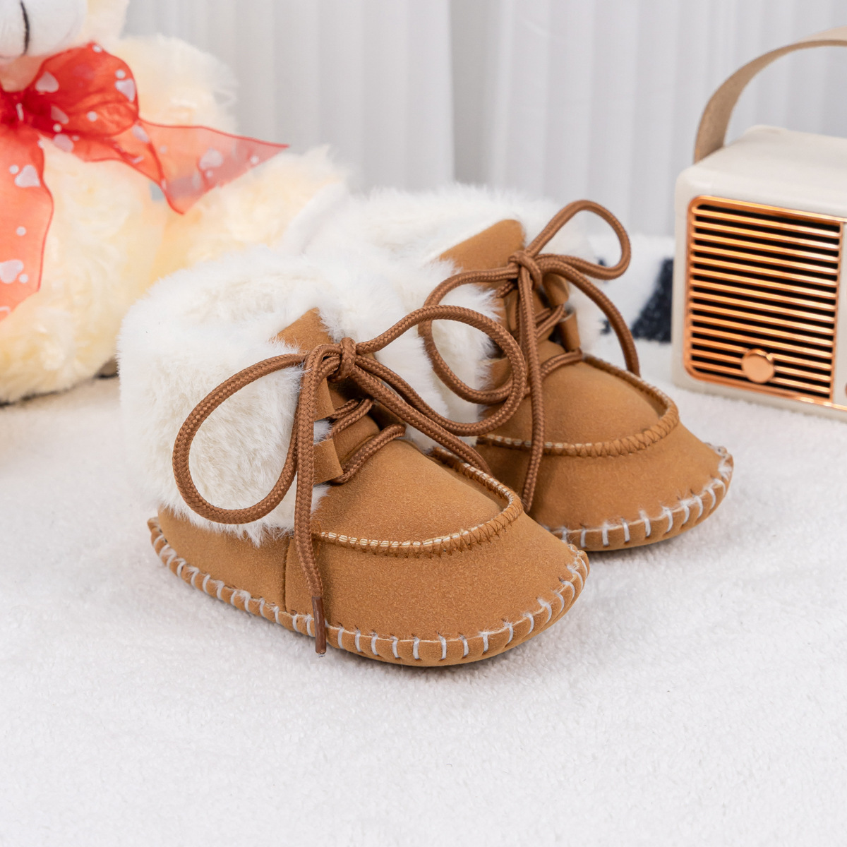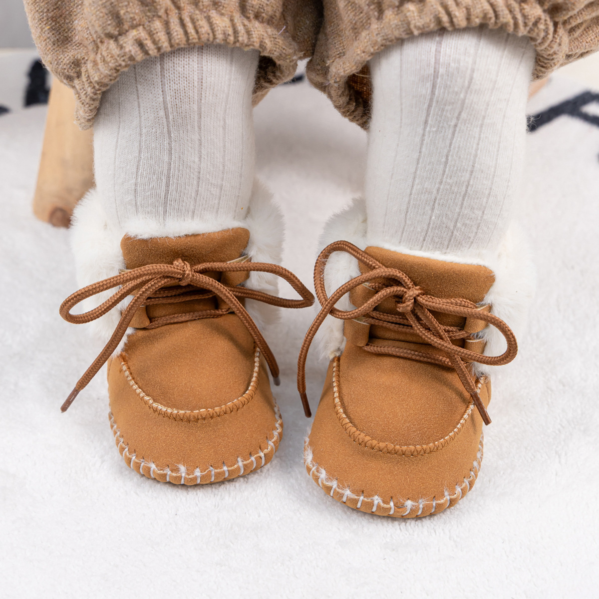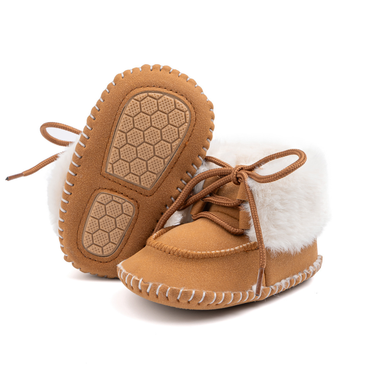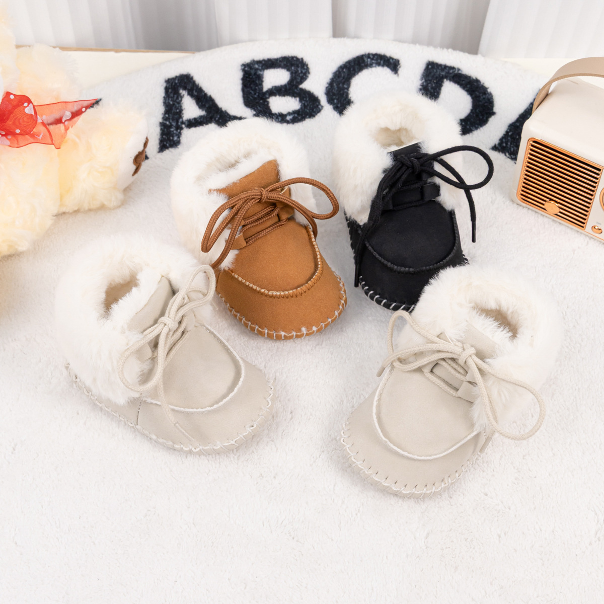 국경을 넘는 새로운 단색 부츠 레이스 업 부드러운 밑창 미끄럼 방지 실내 아기 신발 아기 신발 부츠스토어 가기