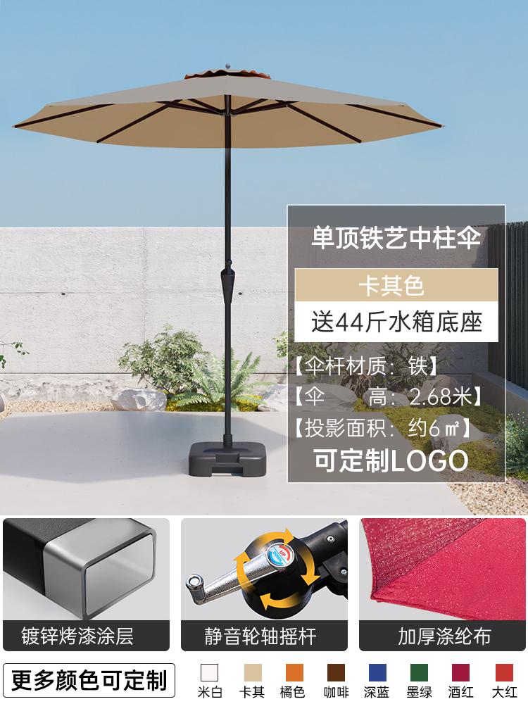 • 디디❧❧2.7m 핸드 크랭크 카키 센터 포스트 우산 + 베이스 dd❧❧