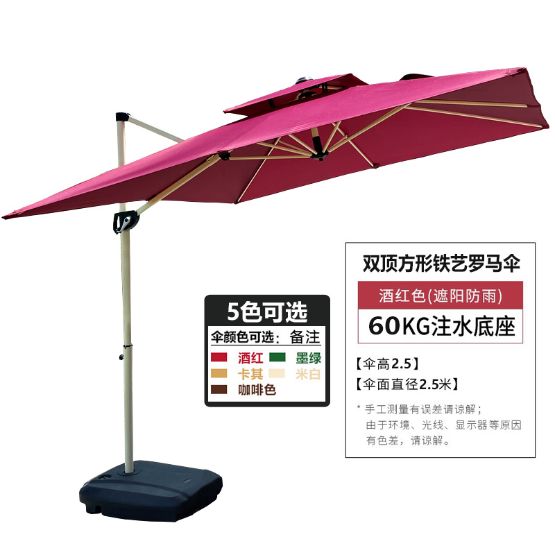 • 디디❧❧3m 짙은 녹색 사각형 이중 지붕 로마 우산 + 베이스 dd❧❧