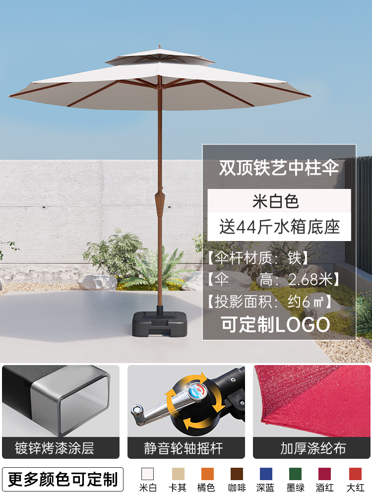 • 디디❧❧2.7m 황백색 이중 지붕 나뭇결 중앙 기둥 우산 + 베이스 dd❧❧