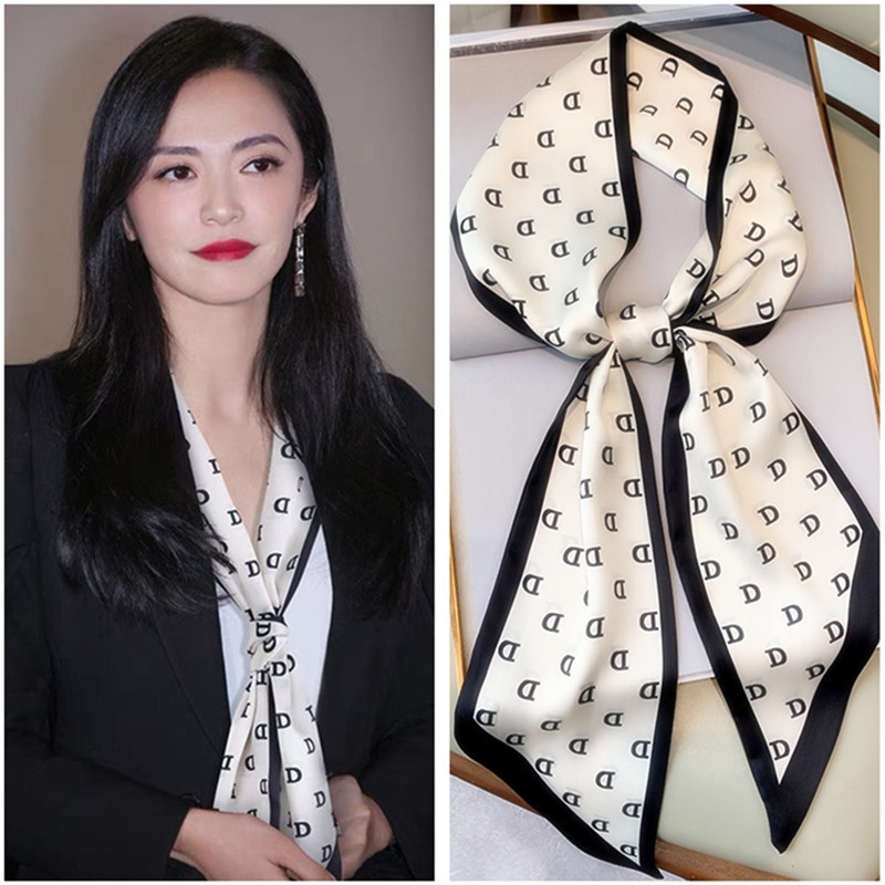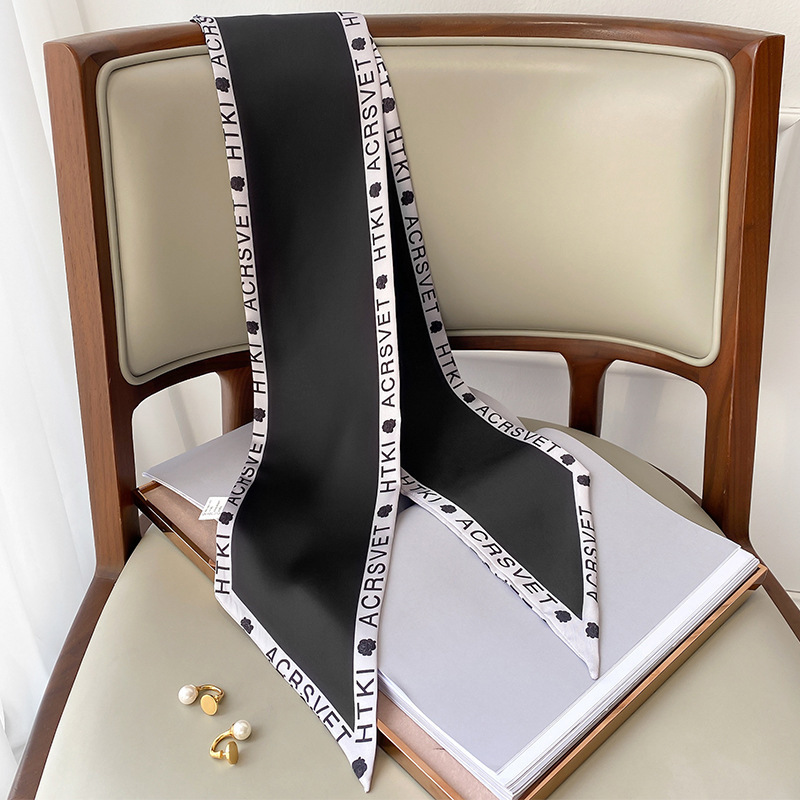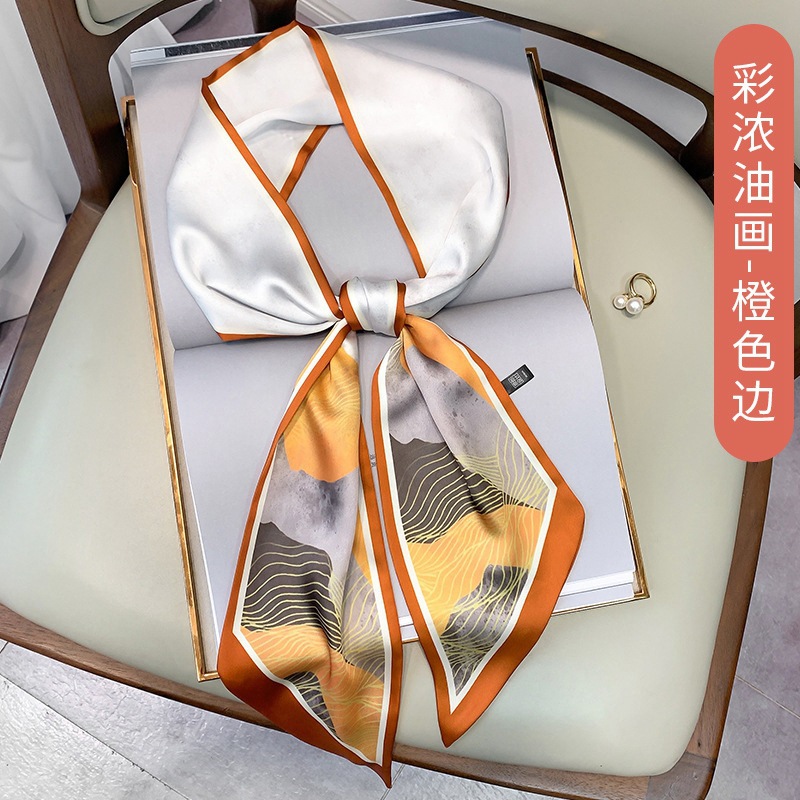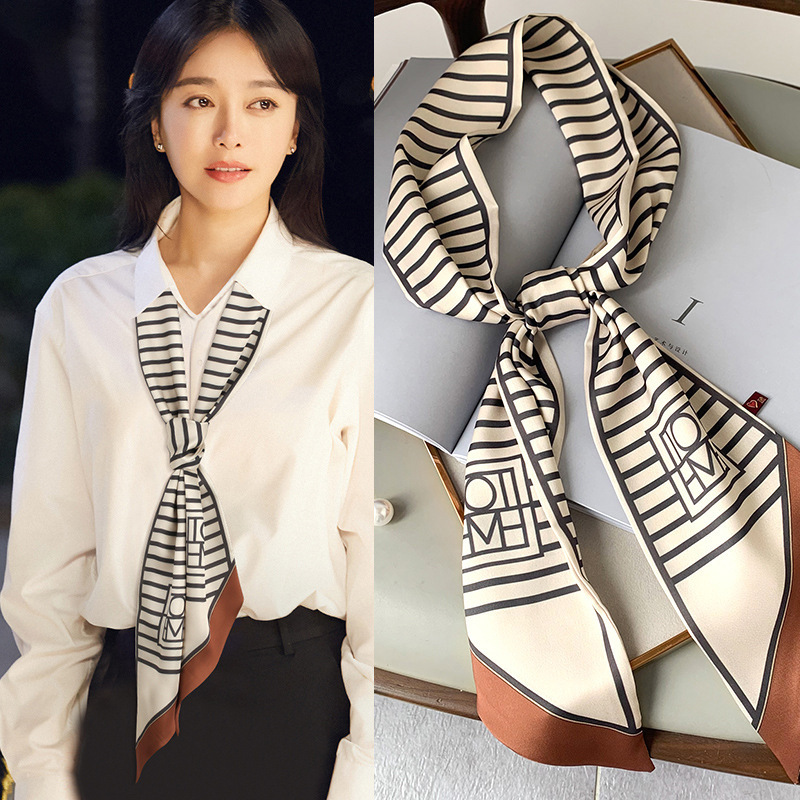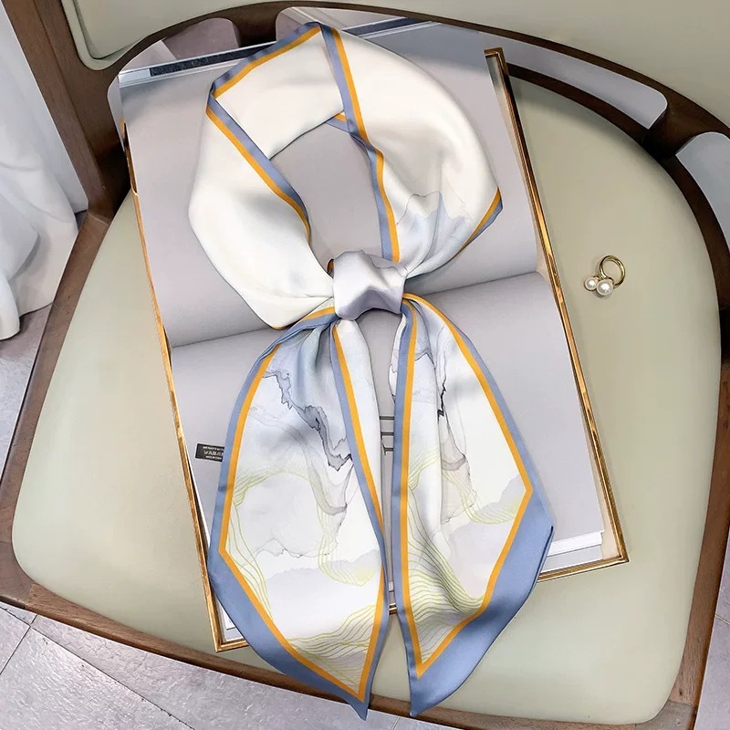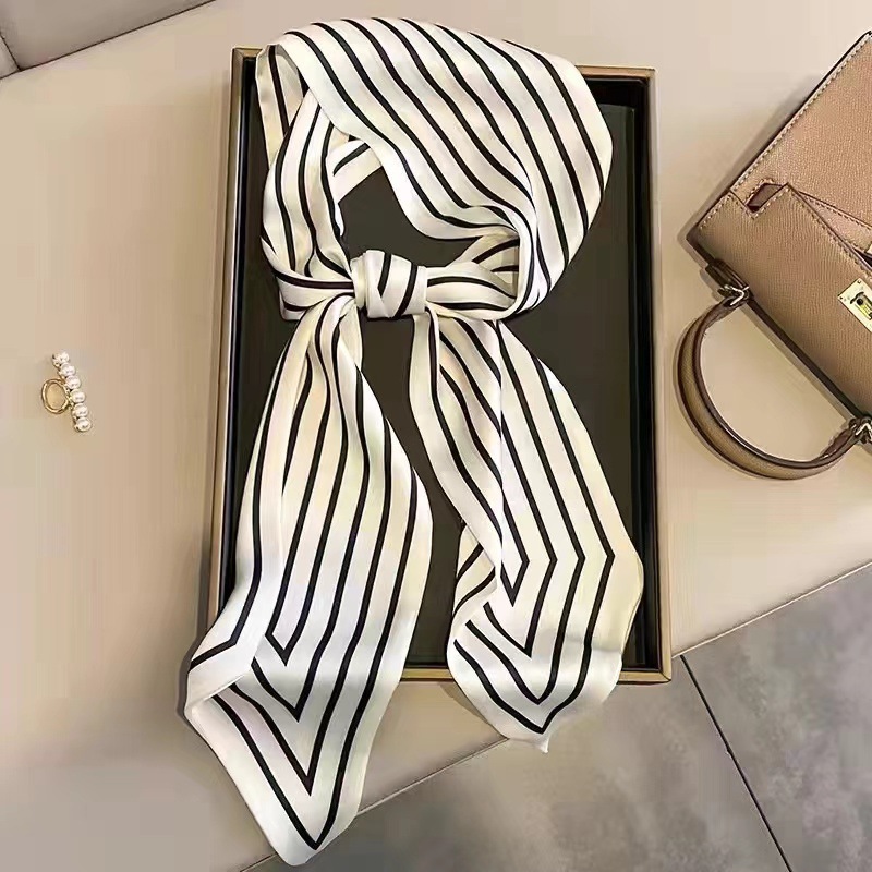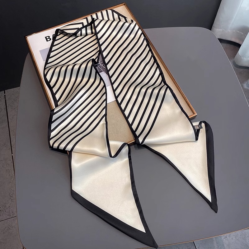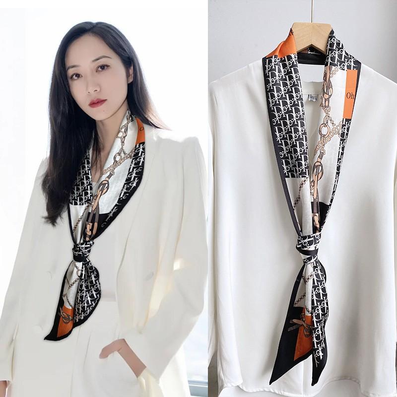 우아한 얇은 실크 스카프, 긴 스트립, 고급 패셔너블 여성 스카프, 봄과 가을 다용도 얇은 리본 대각선 스카프