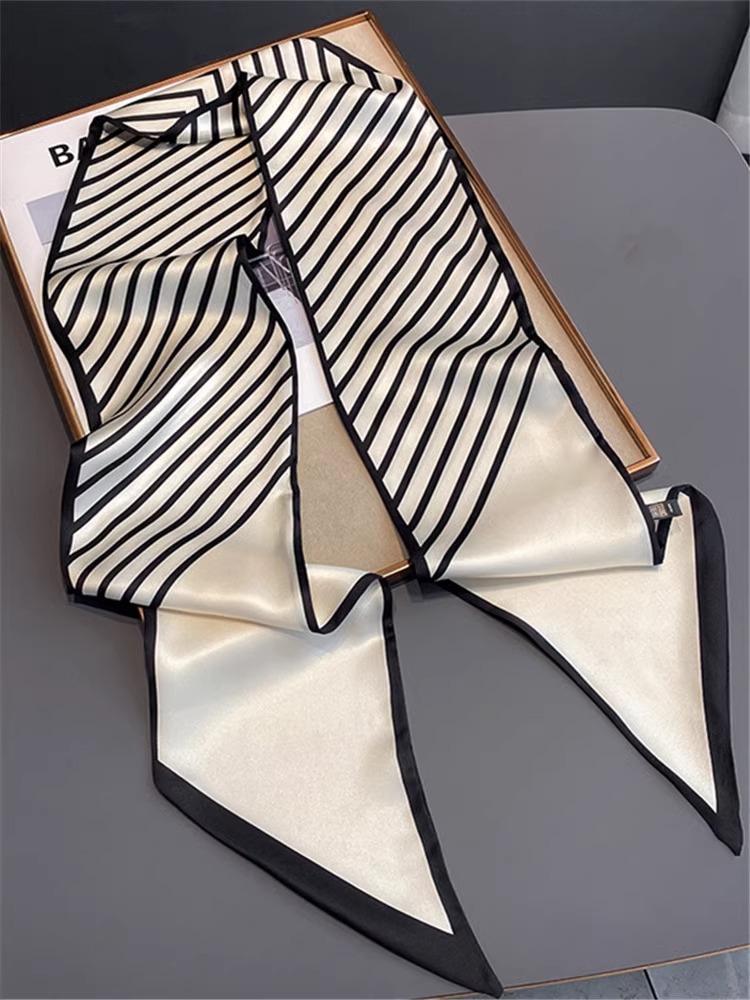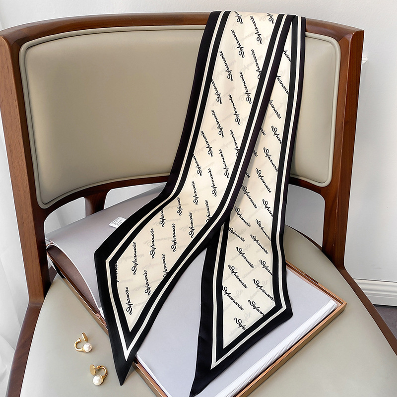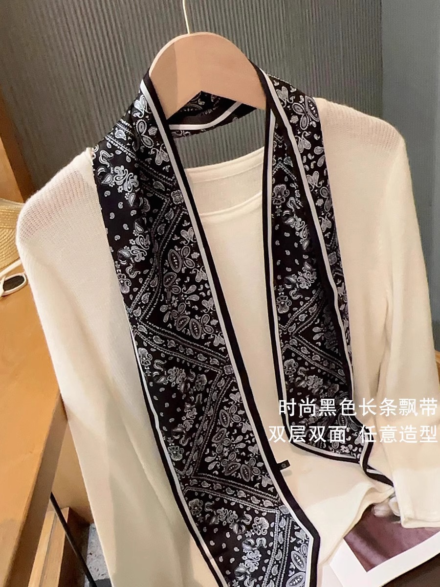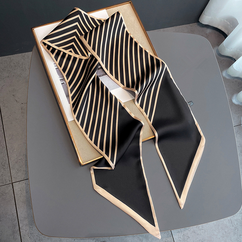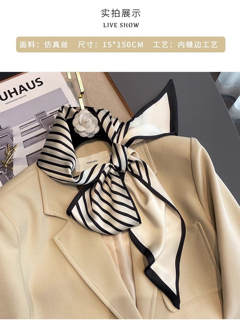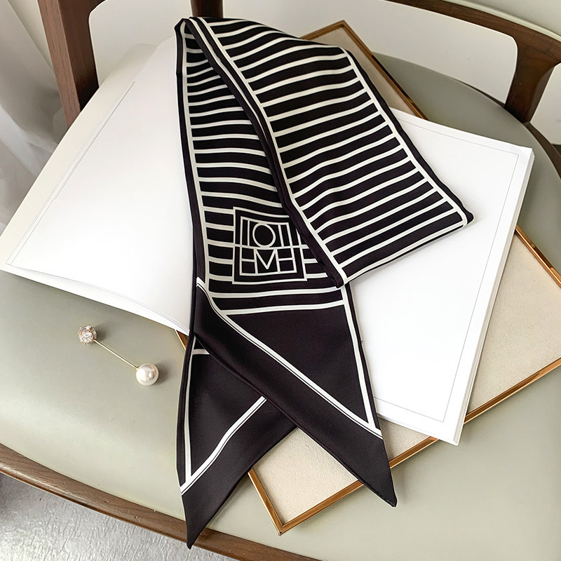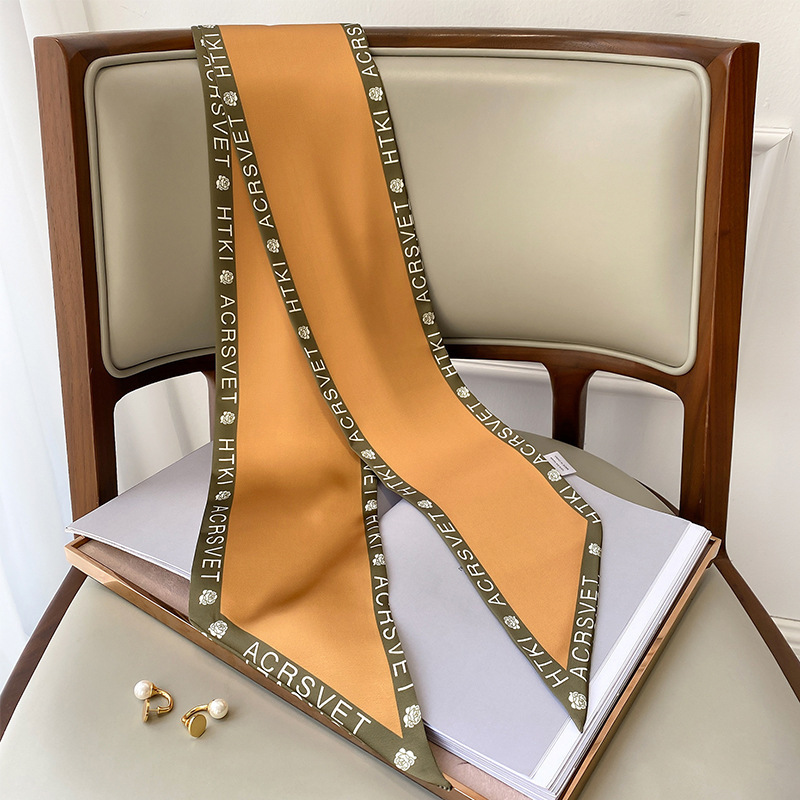 우아한 얇은 실크 스카프, 긴 스트립, 고급 패셔너블 여성 스카프, 봄과 가을 다용도 얇은 리본 대각선 스카프