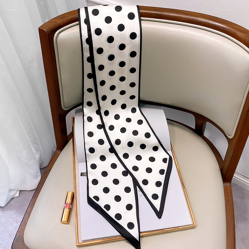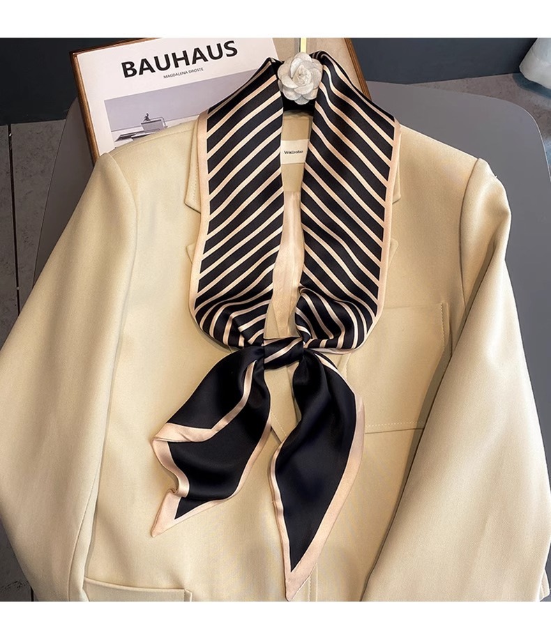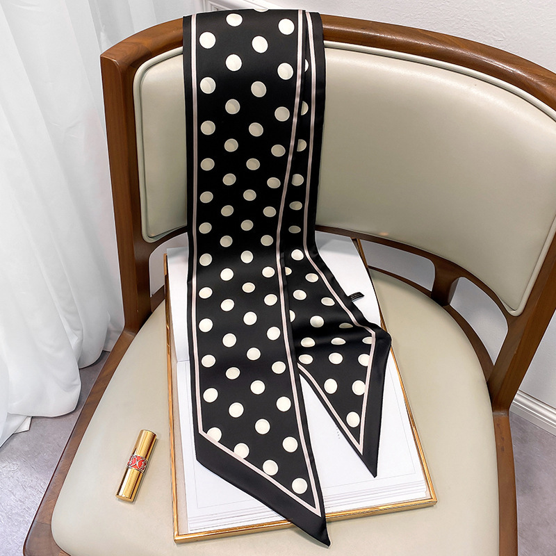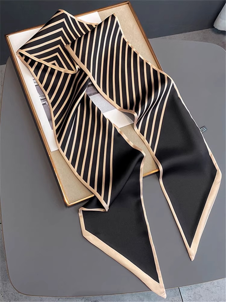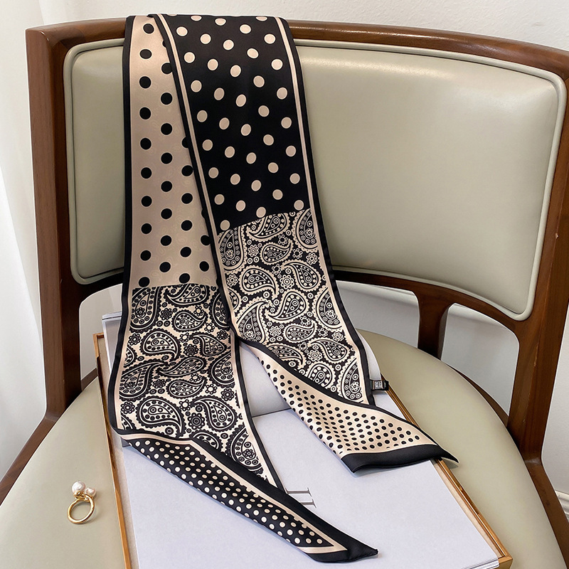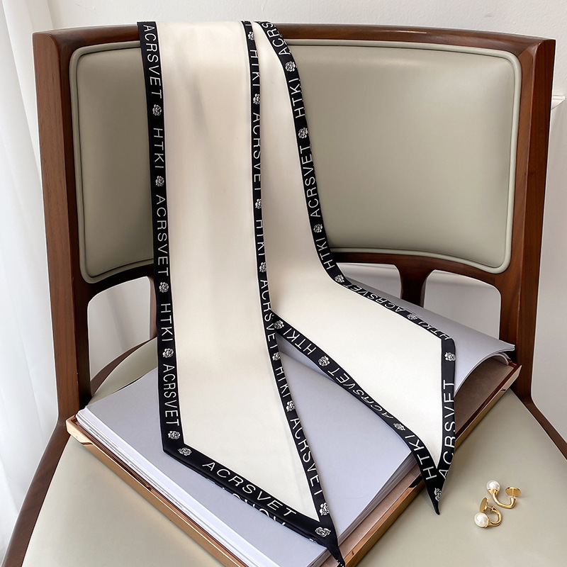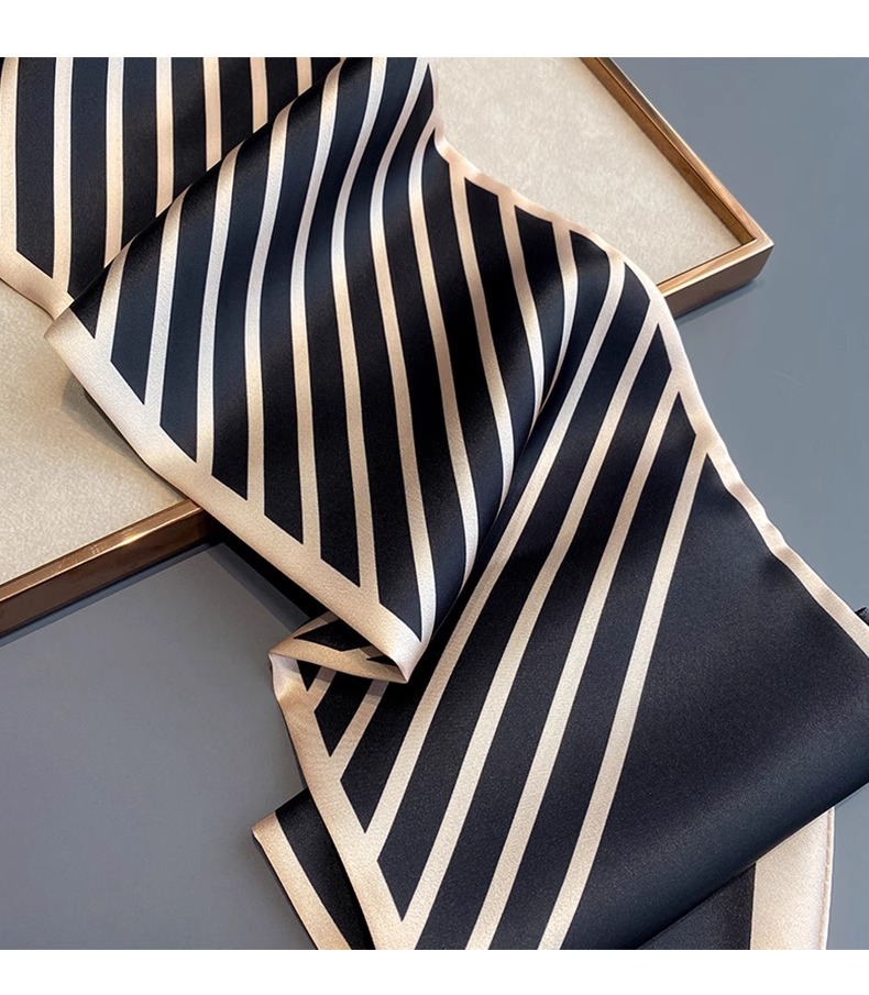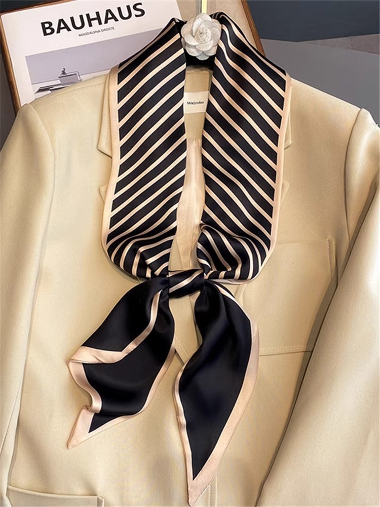 우아한 얇은 실크 스카프, 긴 스트립, 고급 패셔너블 여성 스카프, 봄과 가을 다용도 얇은 리본 대각선 스카프
