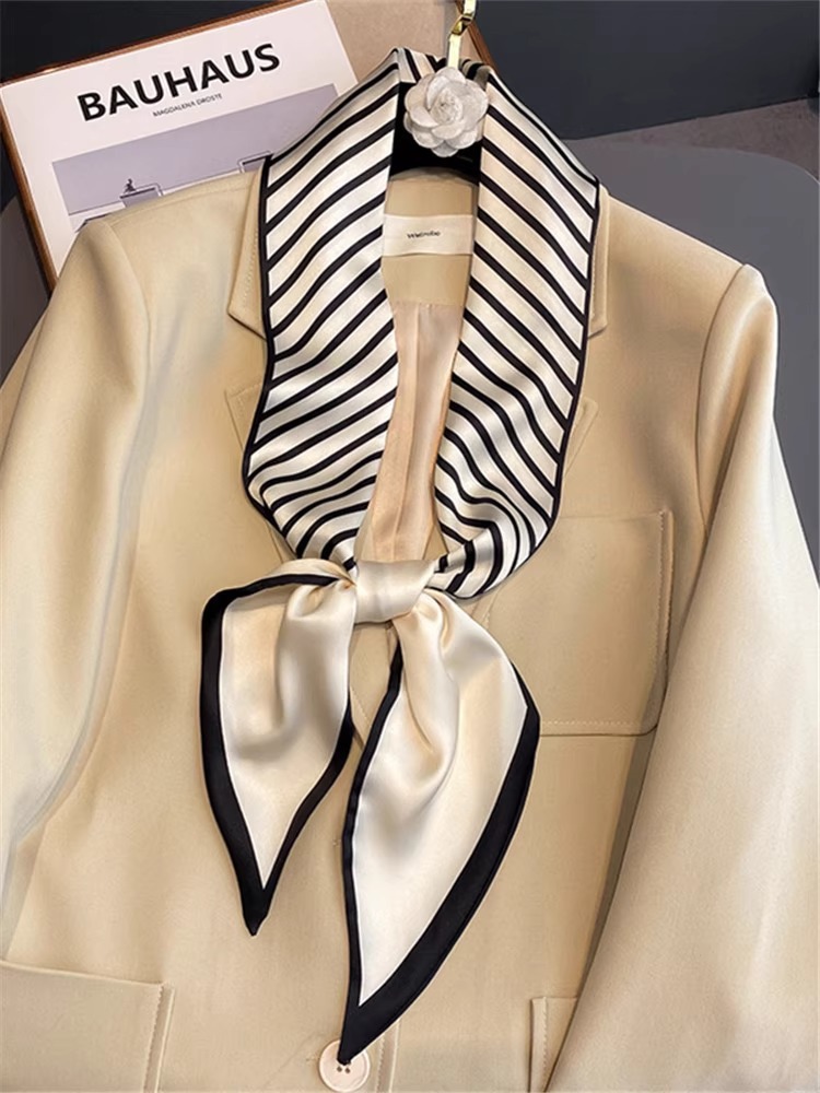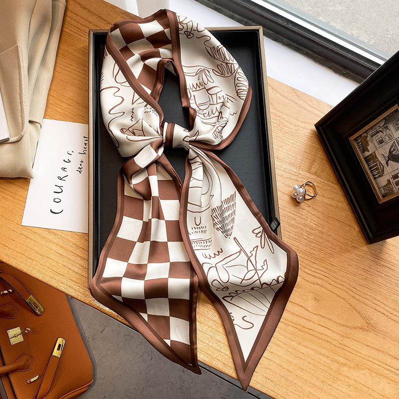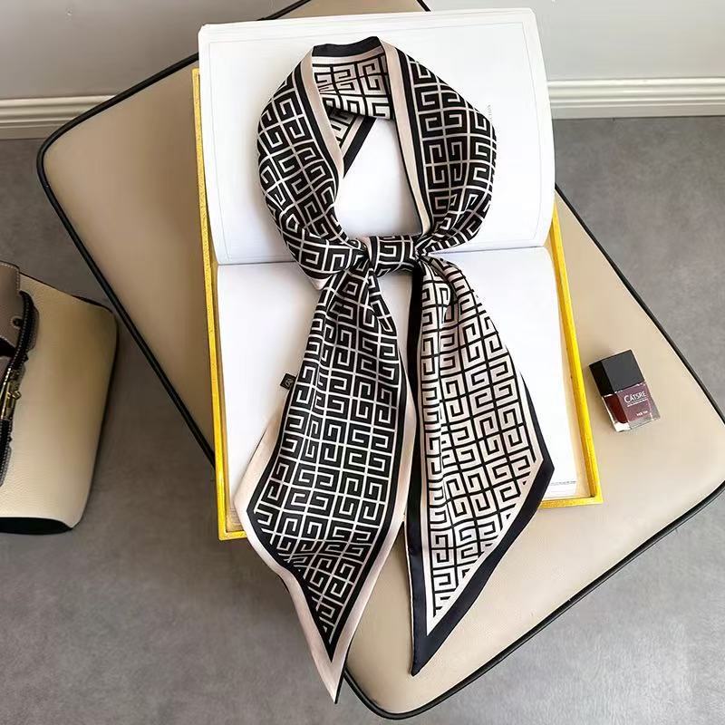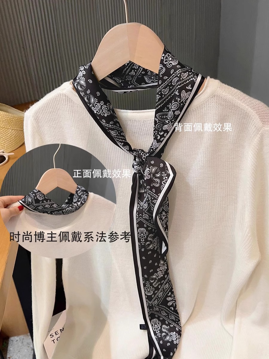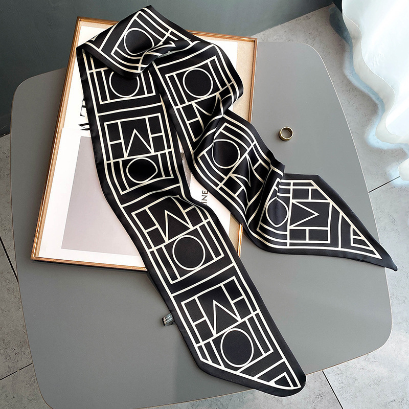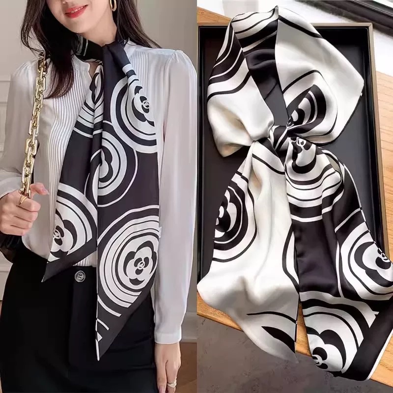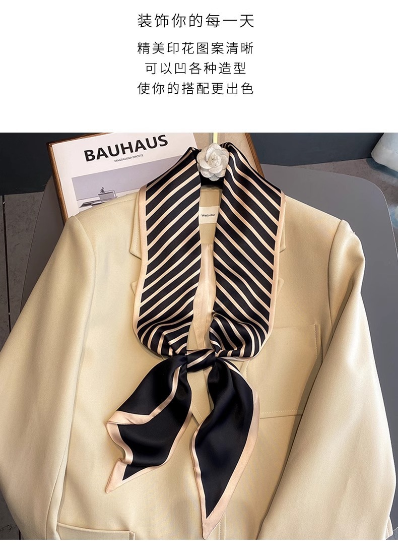 우아한 얇은 실크 스카프, 긴 스트립, 고급 패셔너블 여성 스카프, 봄과 가을 다용도 얇은 리본 대각선 스카프