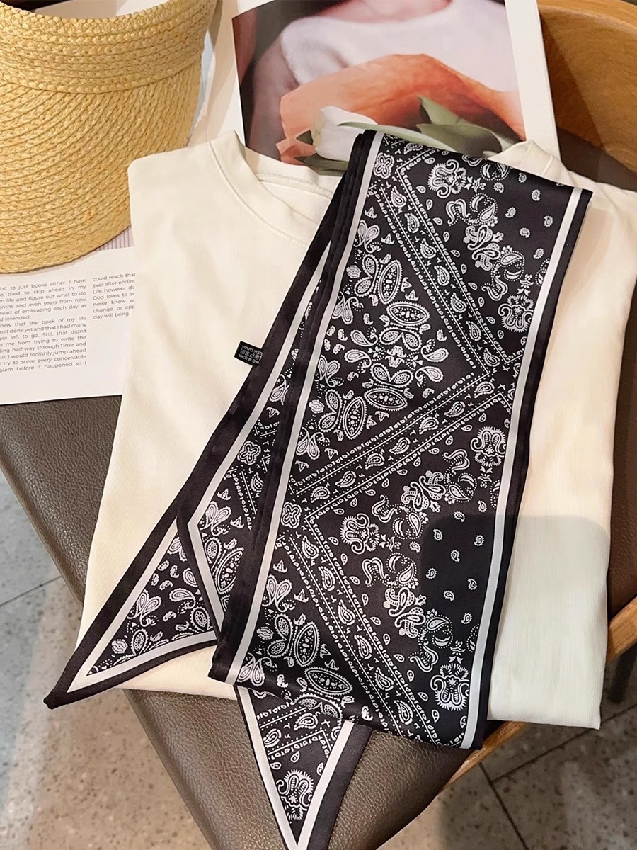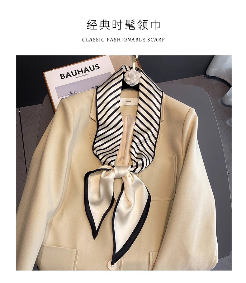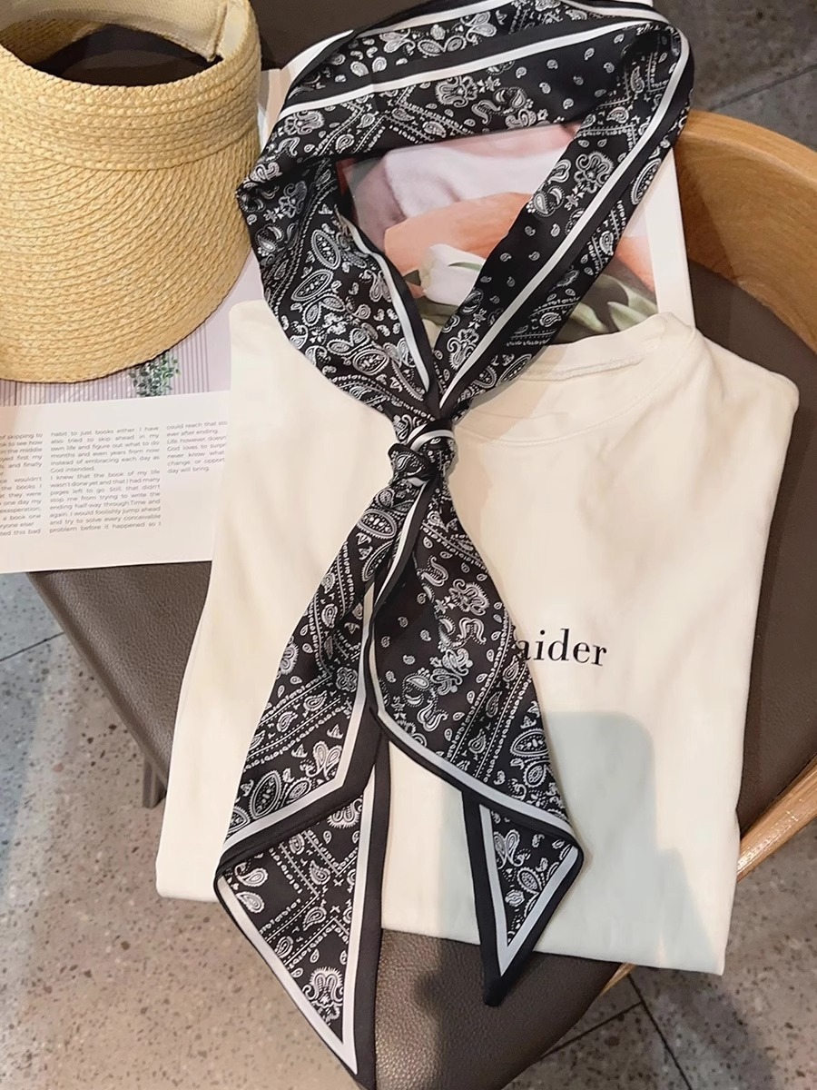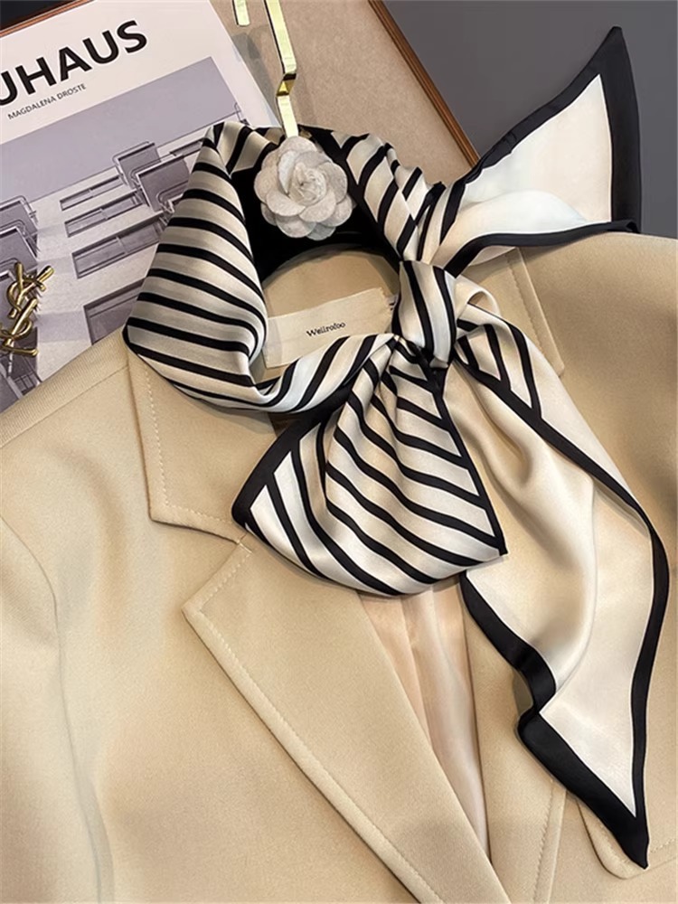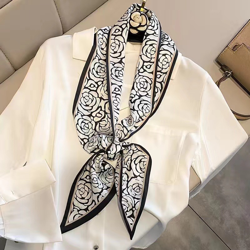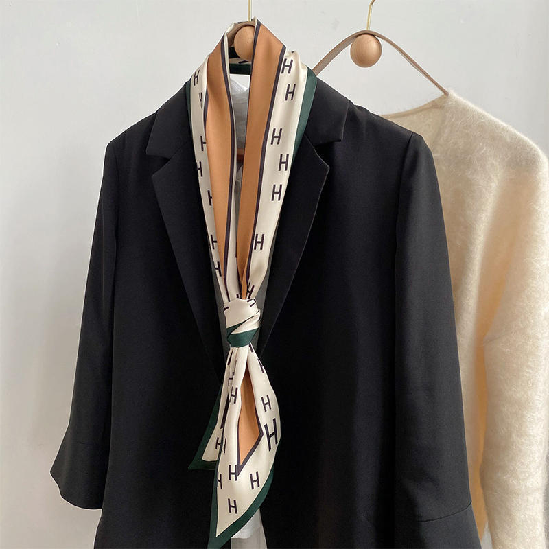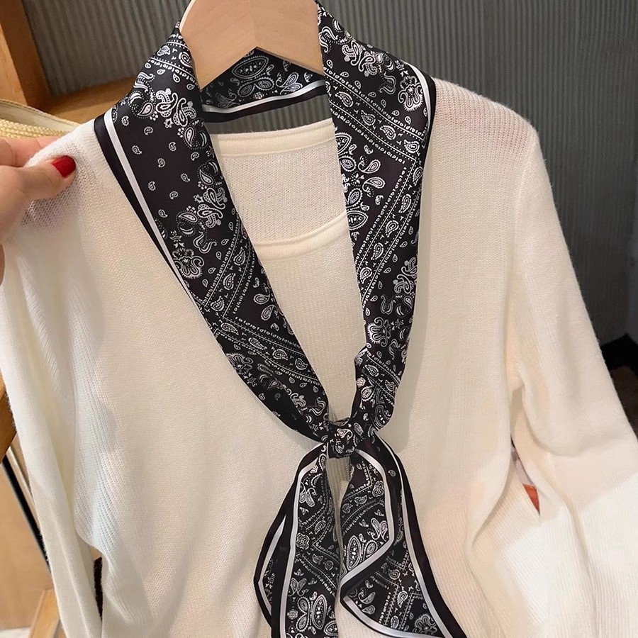 우아한 얇은 실크 스카프, 긴 스트립, 고급 패셔너블 여성 스카프, 봄과 가을 다용도 얇은 리본 대각선 스카프