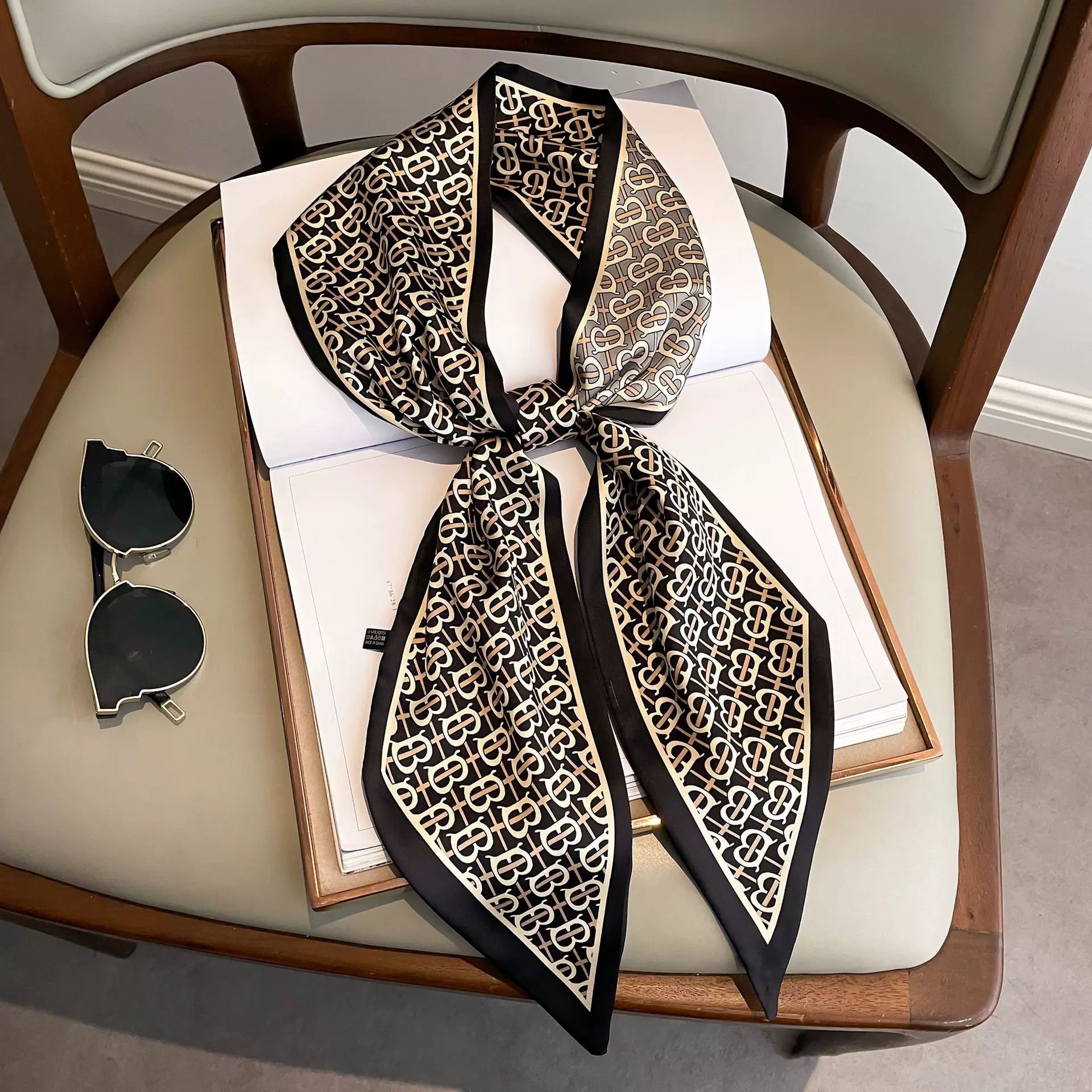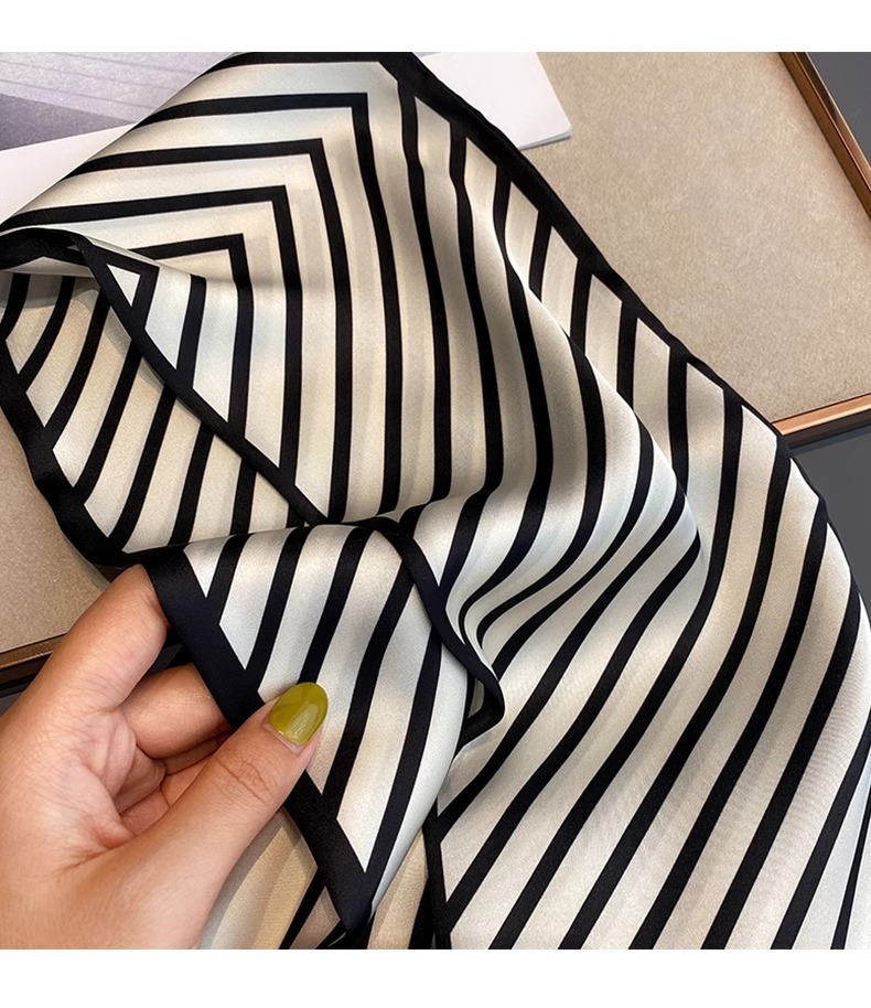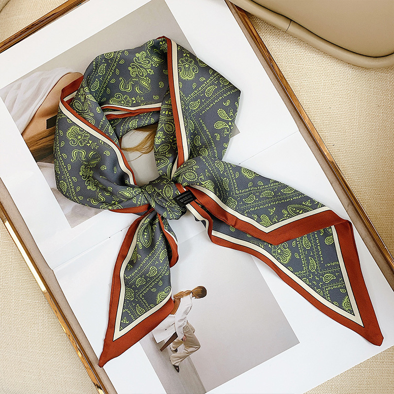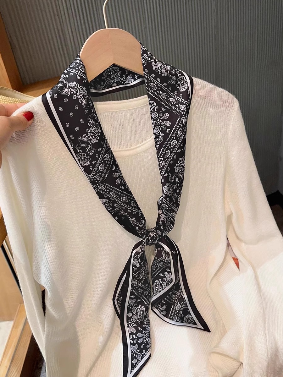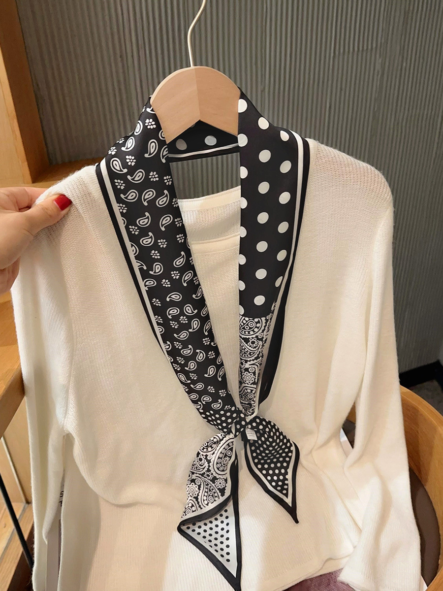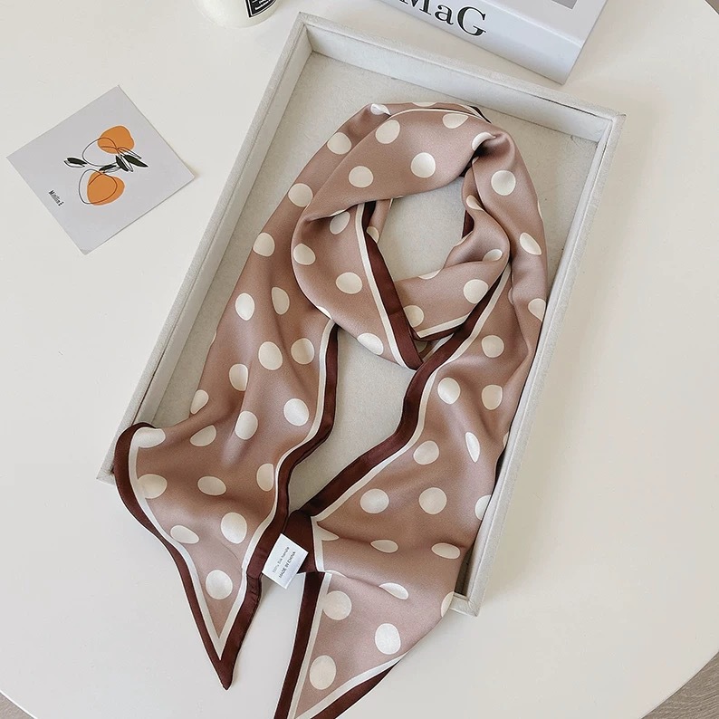 우아한 얇은 실크 스카프, 긴 스트립, 고급 패셔너블 여성 스카프, 봄과 가을 다용도 얇은 리본 대각선 스카프