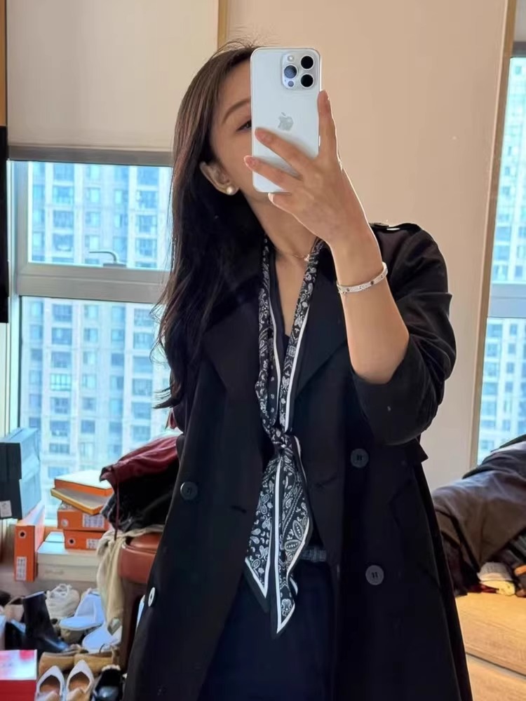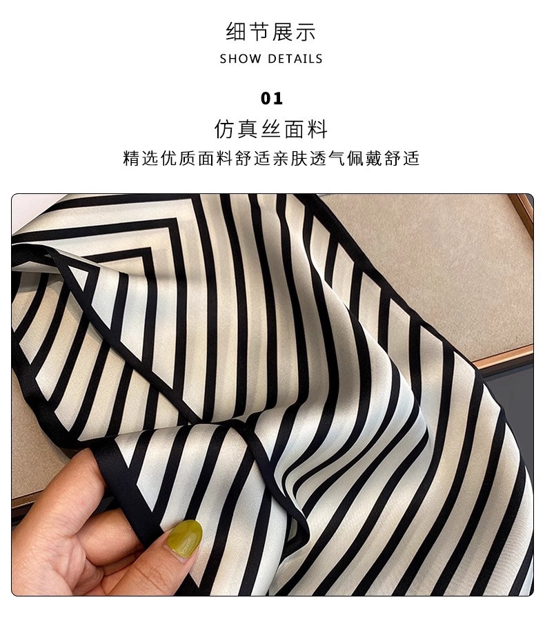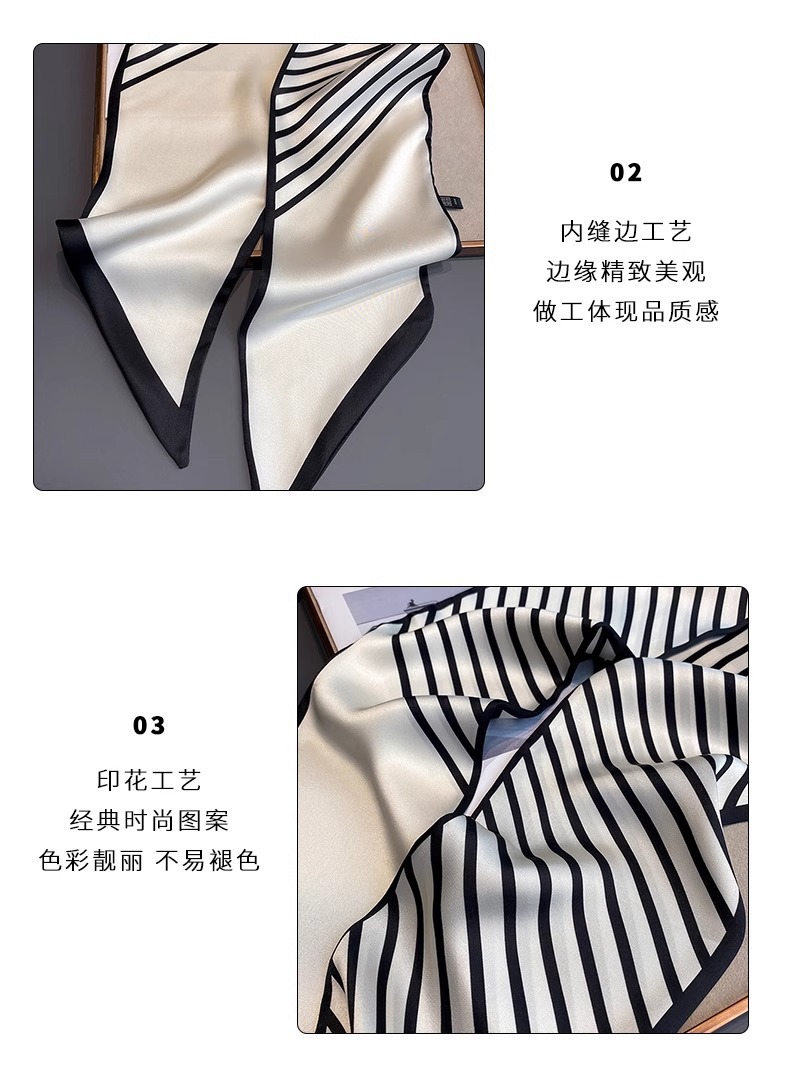 우아한 얇은 실크 스카프, 긴 스트립, 고급 패셔너블 여성 스카프, 봄과 가을 다용도 얇은 리본 대각선 스카프스토어 가기