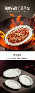 초고온 저항성 Shunde 건식 찜갈비 특수 두꺼운 세라믹 접시 타원형 미국식 바베큐 녹색 라인 식기스토어 가기