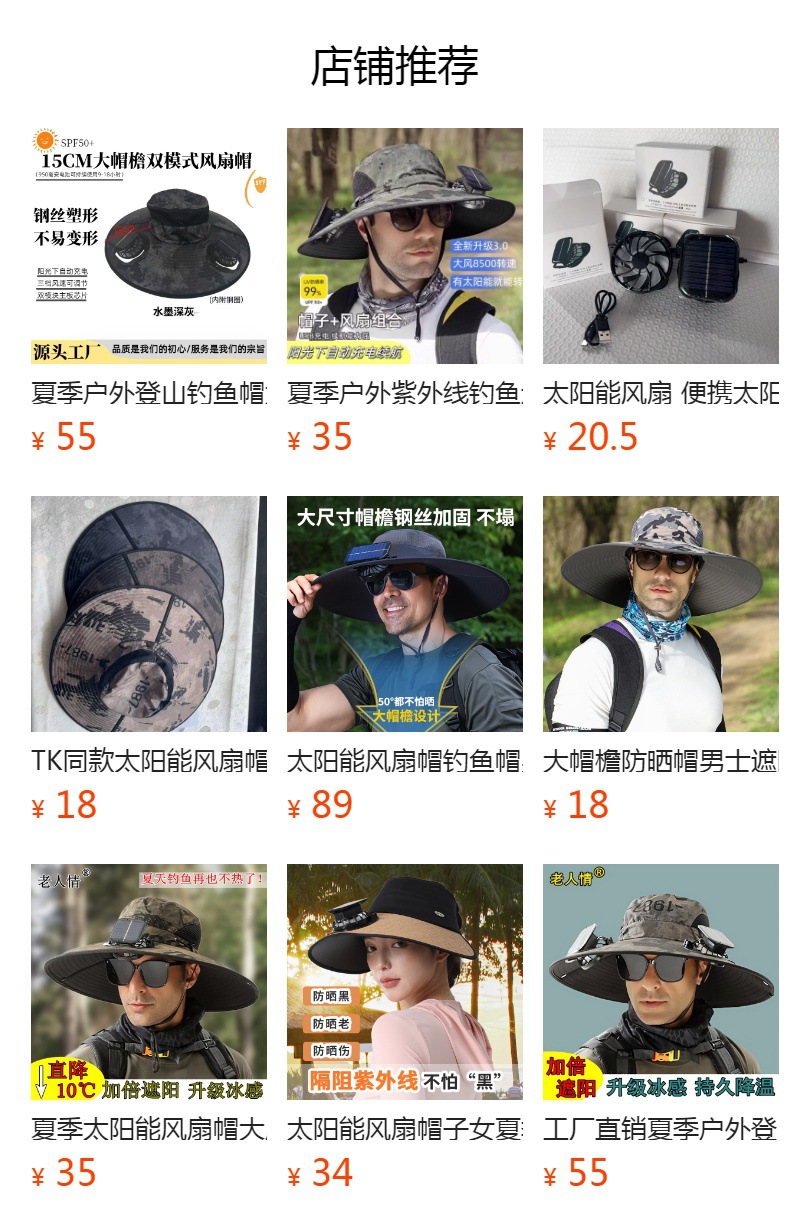 탈착식 12cm 챙이 있는 야외 등산용 태양 모자 Fishing Hat950mAh 태양열 충전 팬 모자스토어 가기