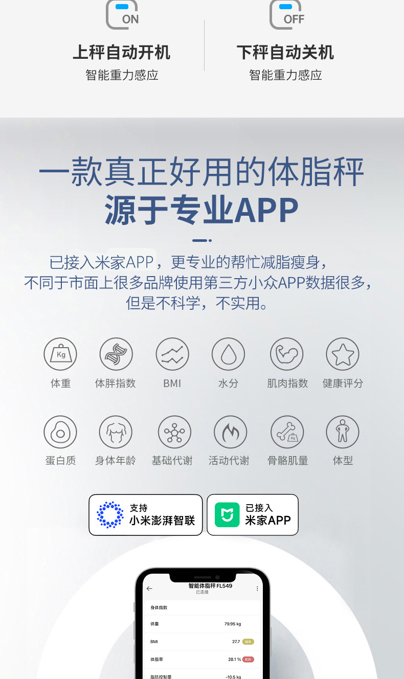 체중계, 가정용 스마트 체지방계, 전자 체중계, 인체 충전식 모델, 정확하게 Mijia APP에 연결됨