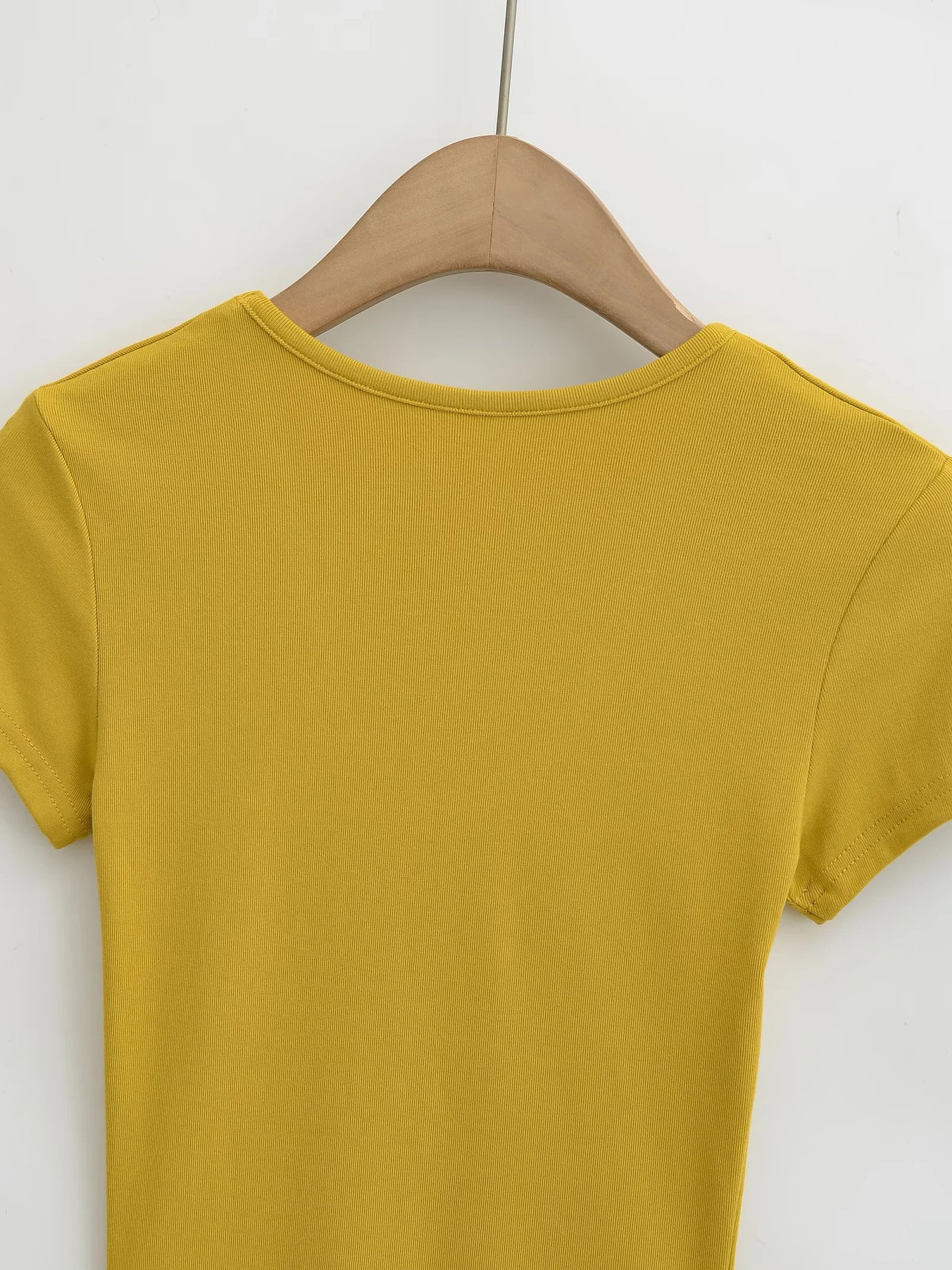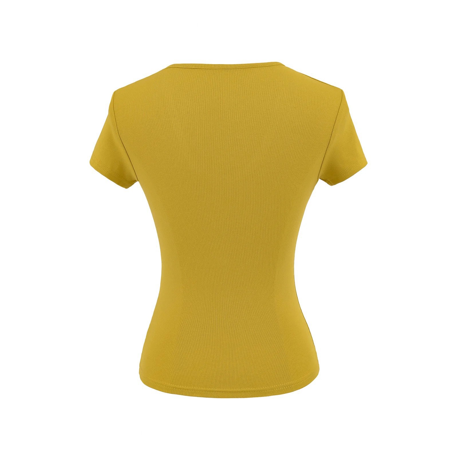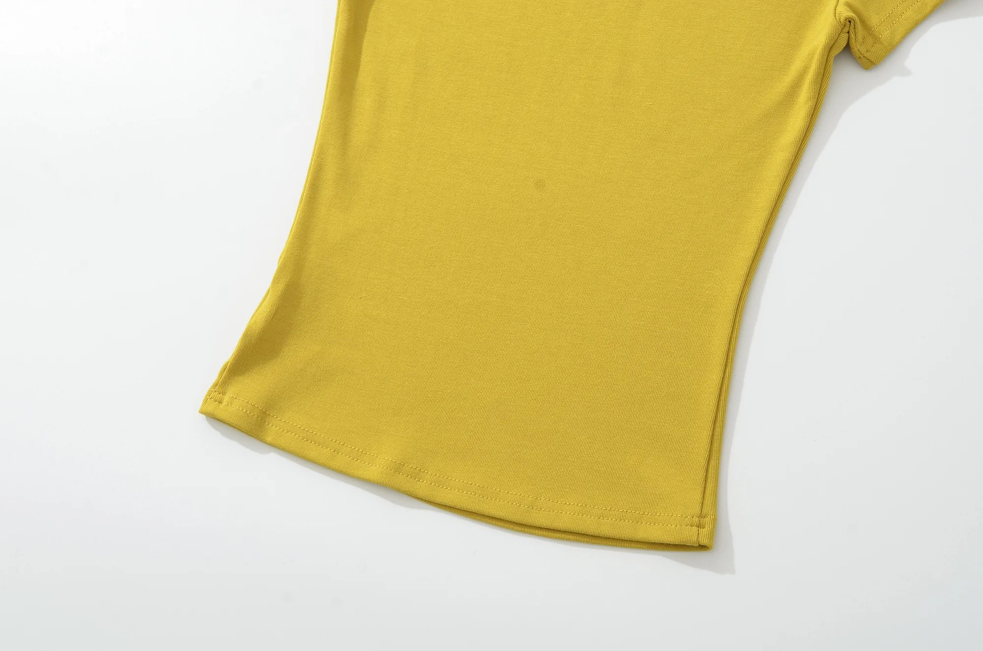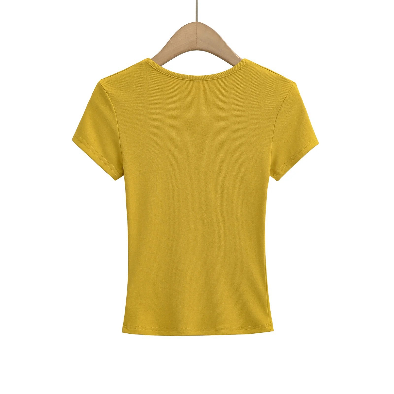 솔리드 컬러 기본 대형 U 넥 모래시계 허리 티셔츠 도매 카다시안 슬림핏 스트레치 오른쪽 어깨 여성용 반팔 탑스토어 가기