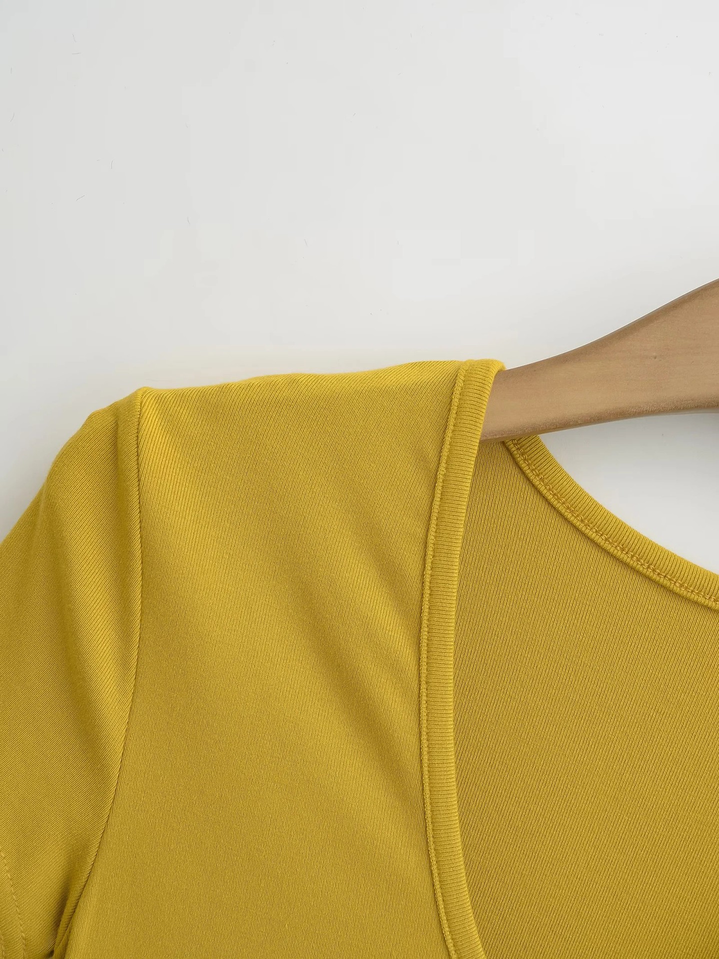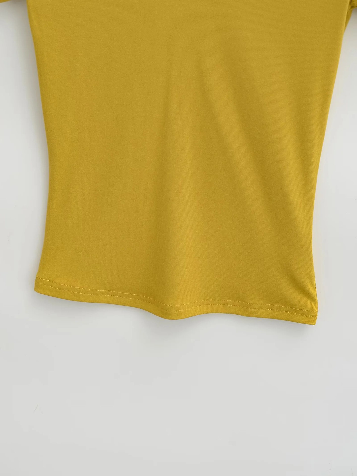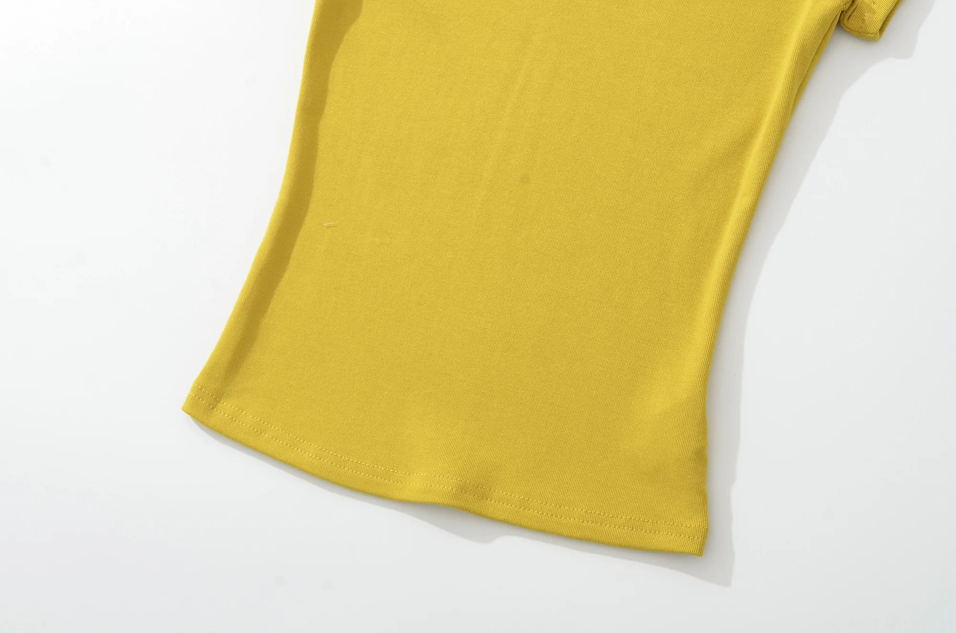 솔리드 컬러 기본 대형 U 넥 모래시계 허리 티셔츠 도매 카다시안 슬림핏 스트레치 오른쪽 어깨 여성용 반팔 탑