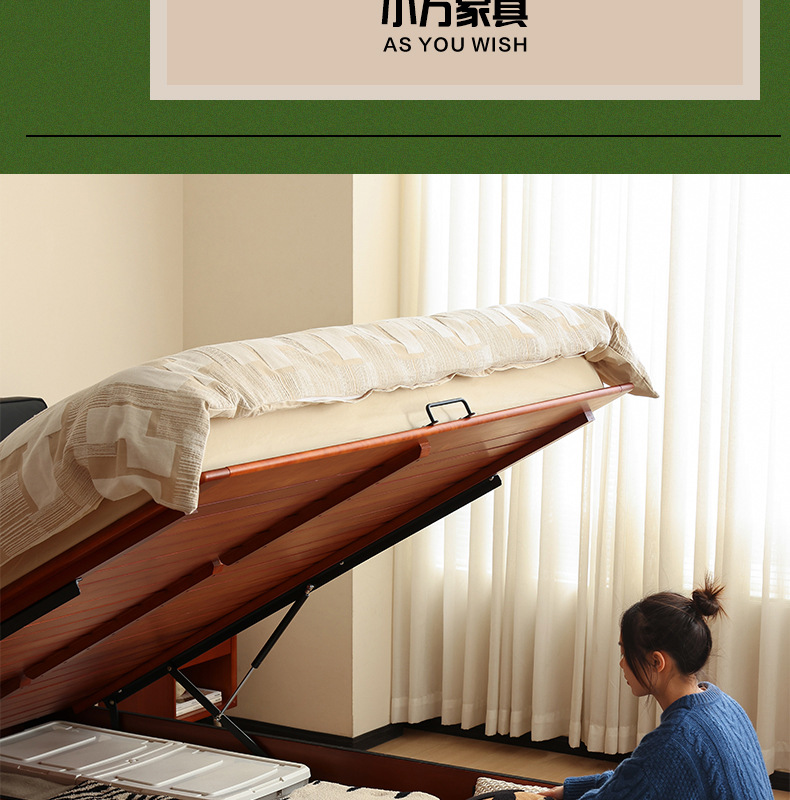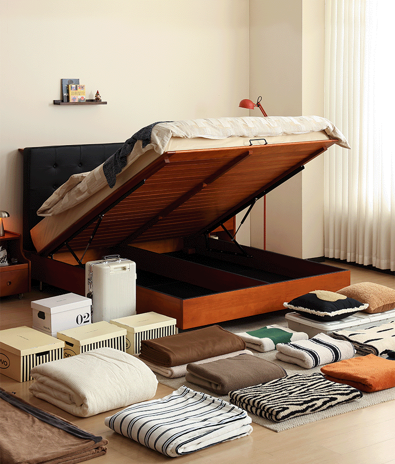 코사인 가구 북유럽 단단한 나무 박스 침대 작은 아파트 마스터 침실 1.5 높은 박스 수납 일본식 1.8 소프트 박스 수납 침대스토어 가기