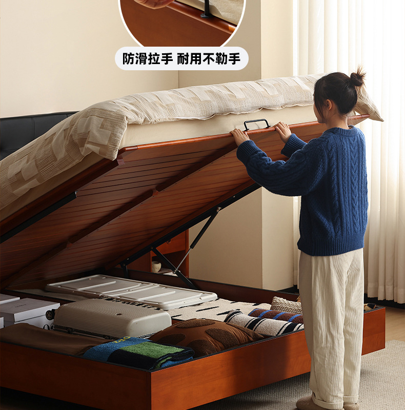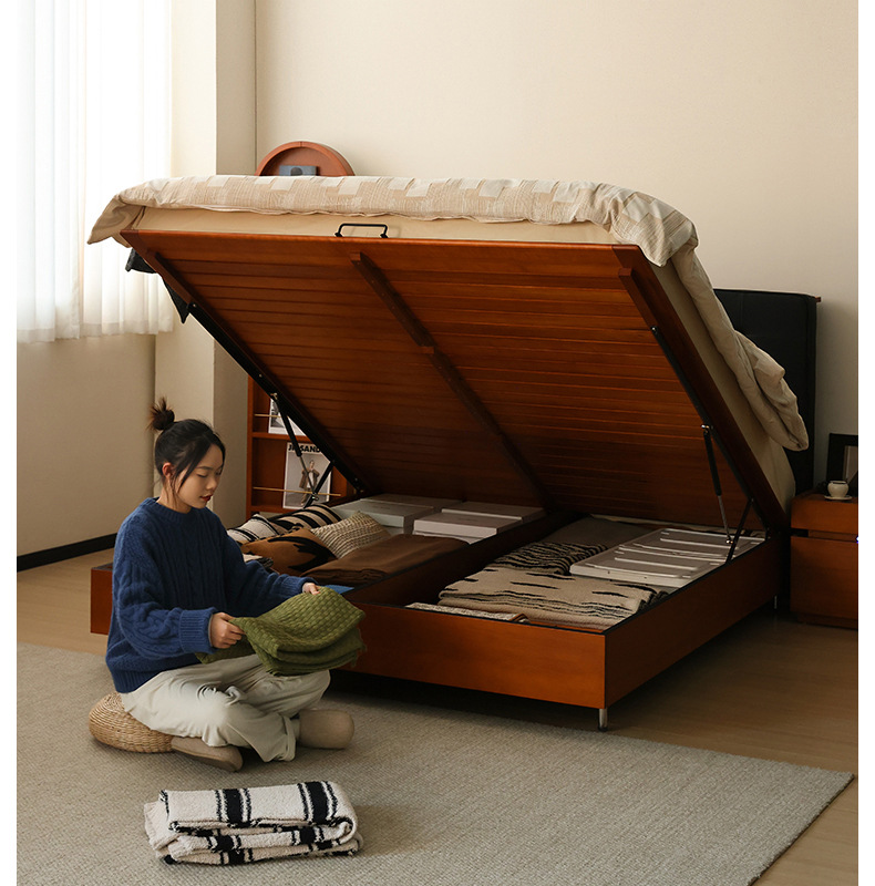코사인 가구 북유럽 단단한 나무 박스 침대 작은 아파트 마스터 침실 1.5 높은 박스 수납 일본식 1.8 소프트 박스 수납 침대