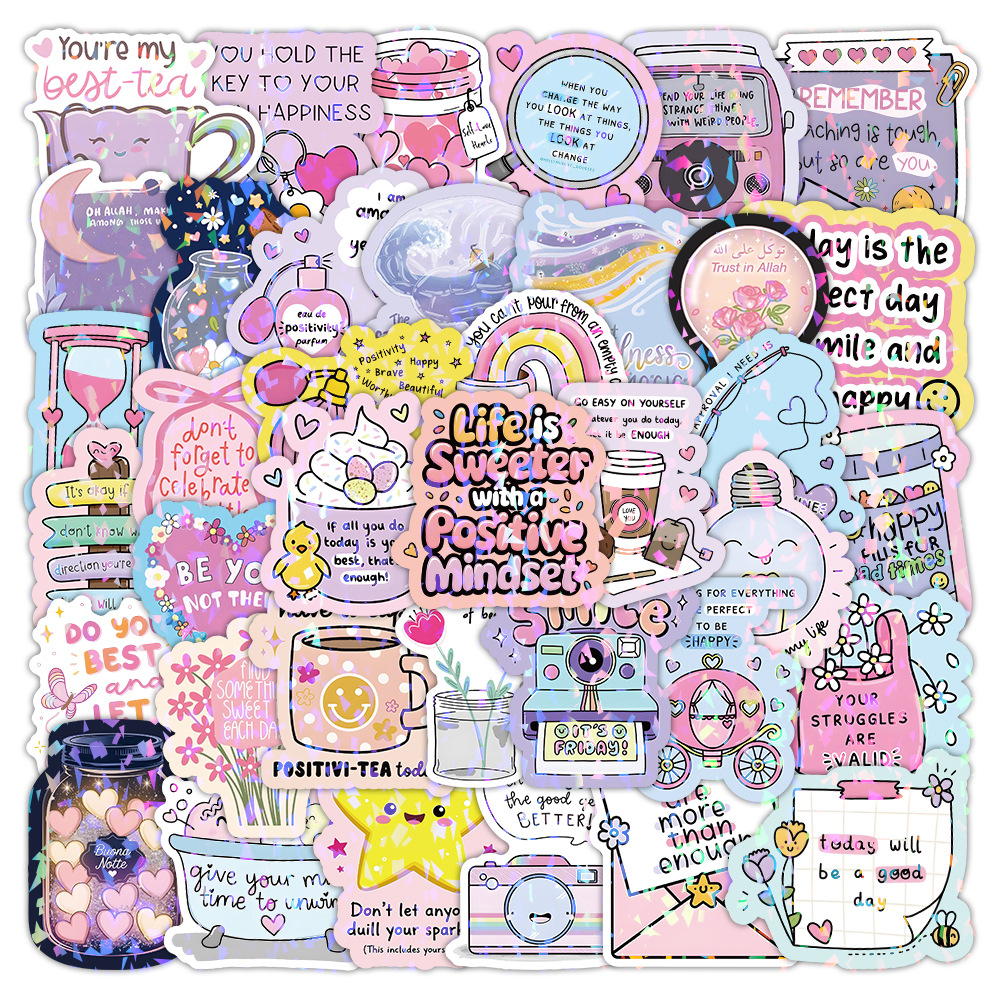50 귀여운 텍스트 인용 미적 레이저 만화 낙서 스티커는 노트북 스쿠터 워터 컵을 장식할 수 있습니다스토어 가기