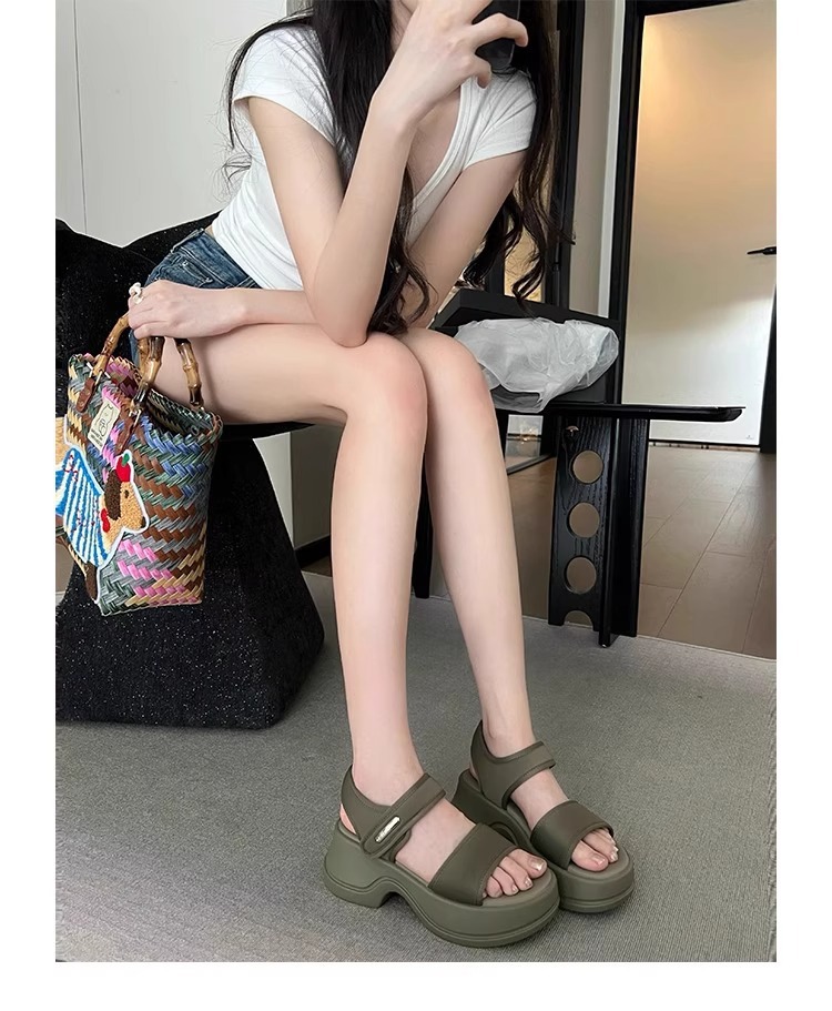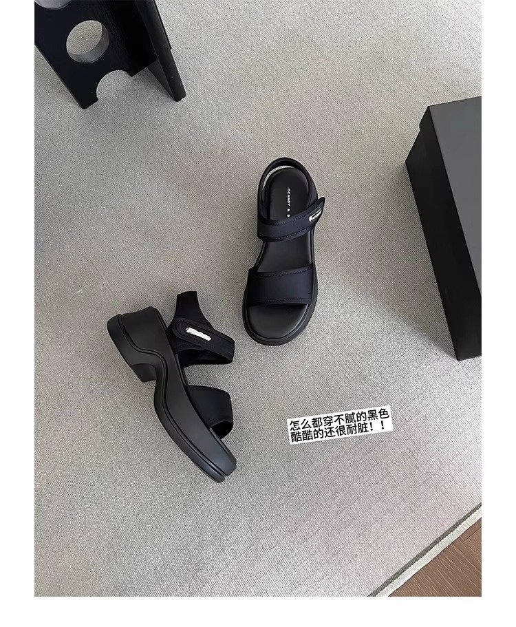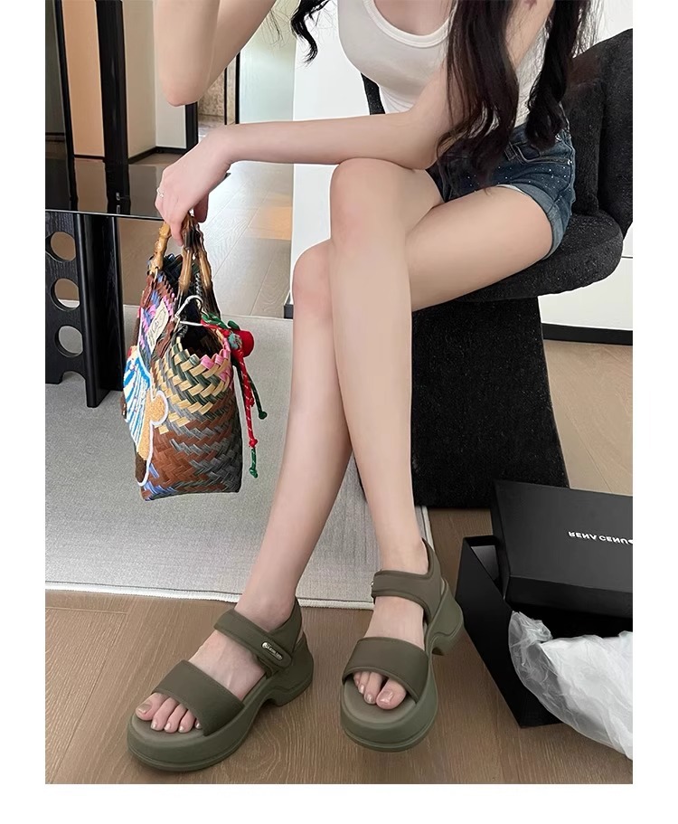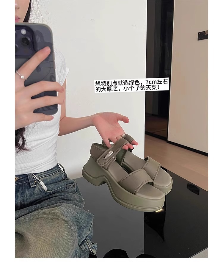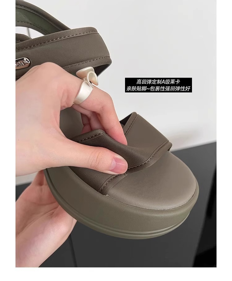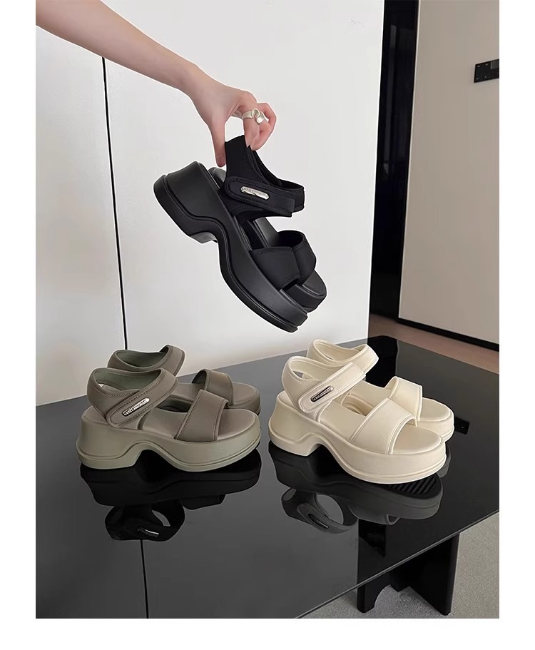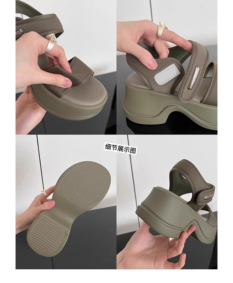 [소가죽 버전] 여성용 두꺼운 밑창 하이힐 샌들 2025 여름 신작 로마 높이 증가 벨크로 스포츠 비치 슈즈스토어 가기