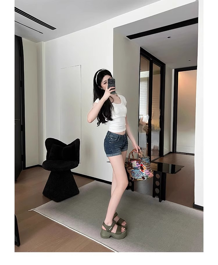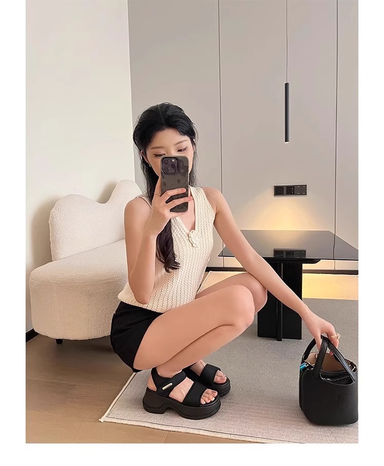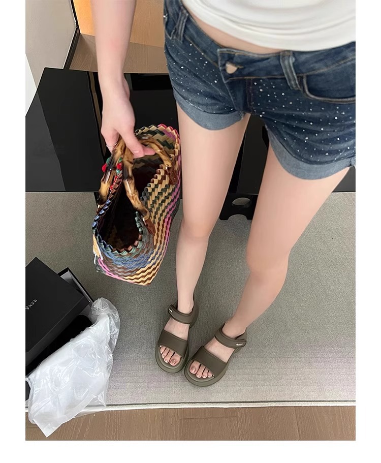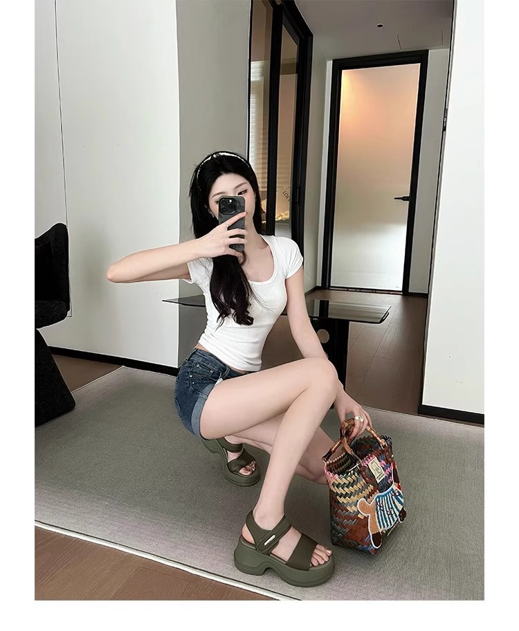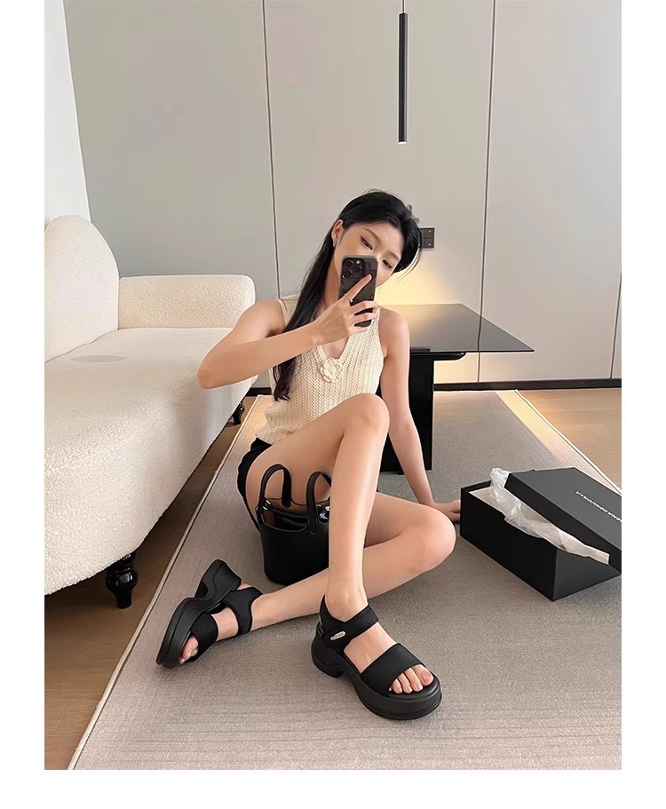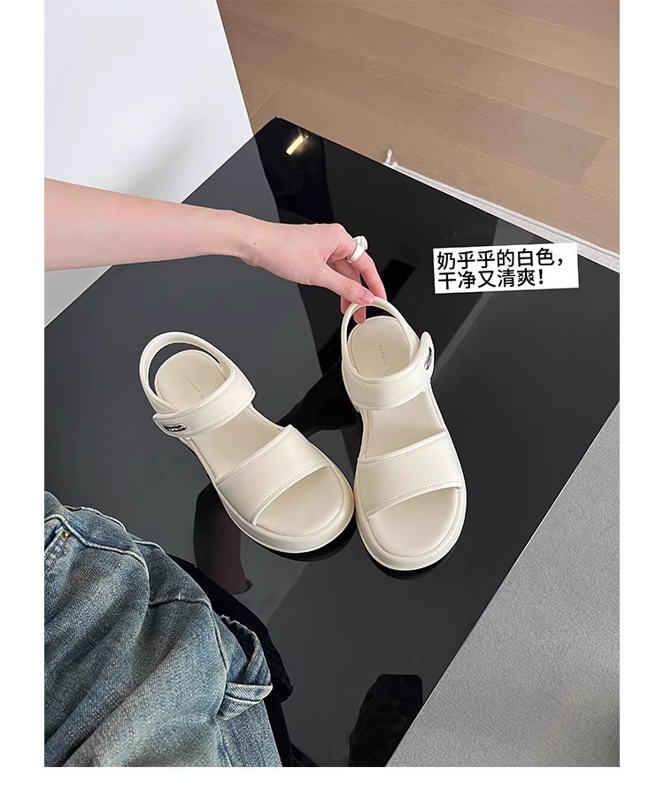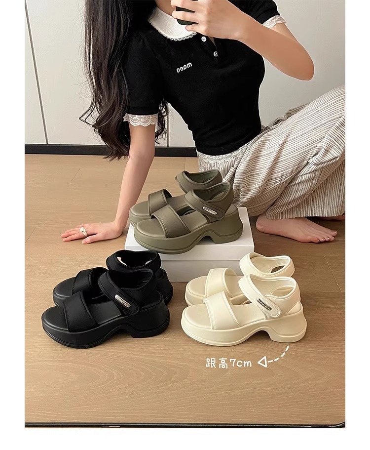 [소가죽 버전] 여성용 두꺼운 밑창 하이힐 샌들 2025 여름 신작 로마 높이 증가 벨크로 스포츠 비치 슈즈스토어 가기