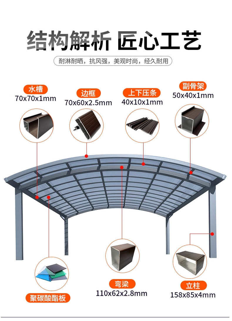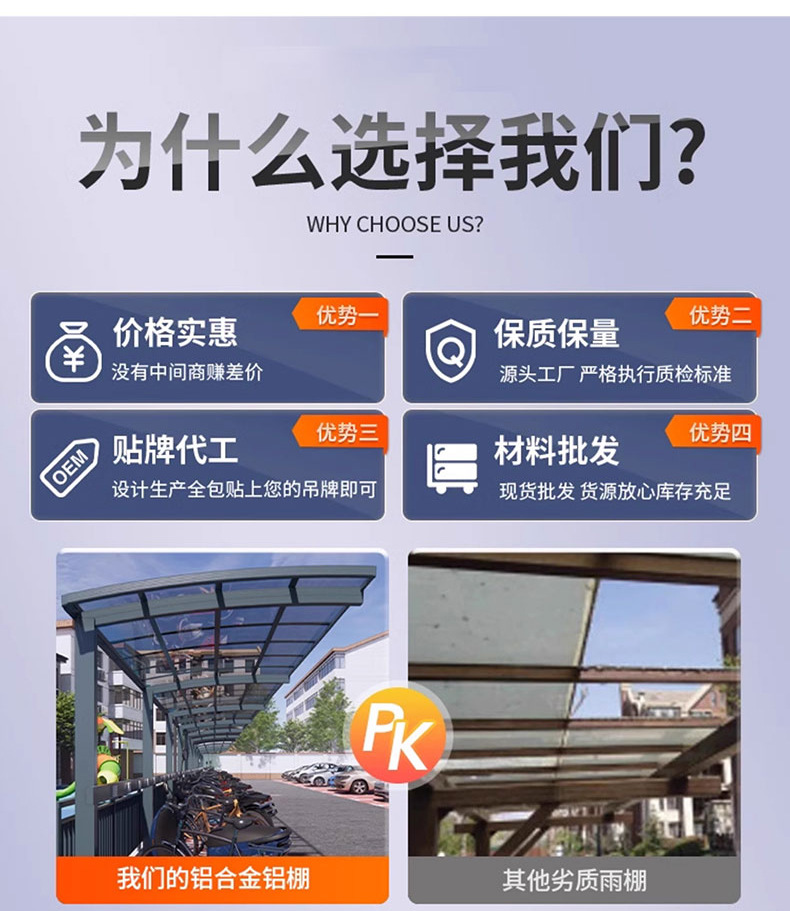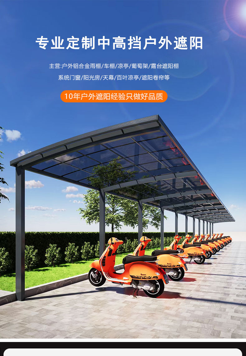 전기 자전거 주차장 차양, 알루미늄 차고 지붕 차양, 야외 차양 및 방수 차양