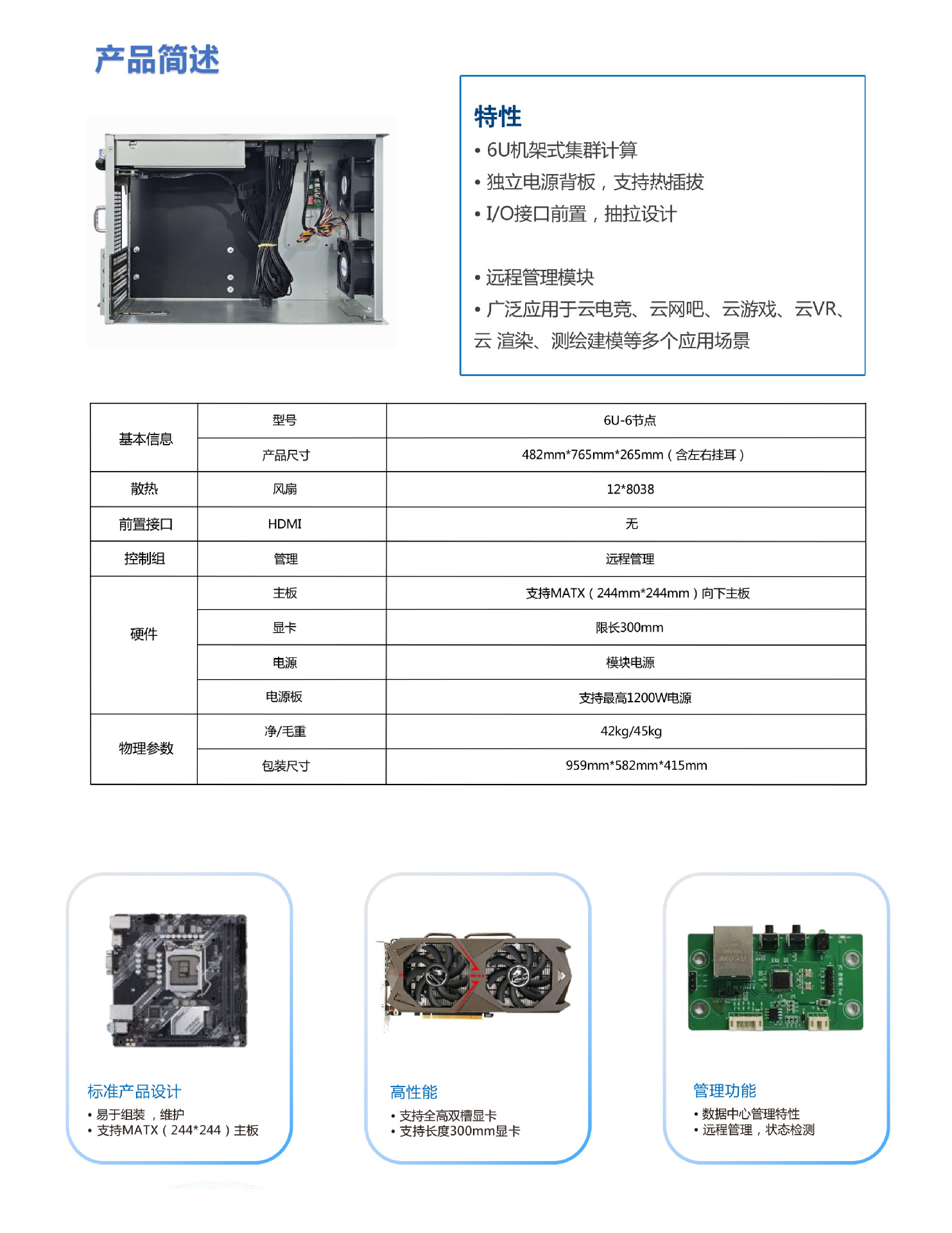 Fanlong PC Farm6U6 노드 랙형 서버 케이스 클라우드 게임 원격 관리 클라우드 컴퓨팅