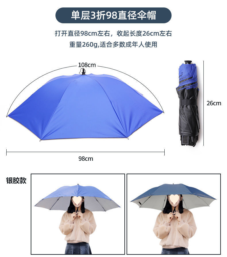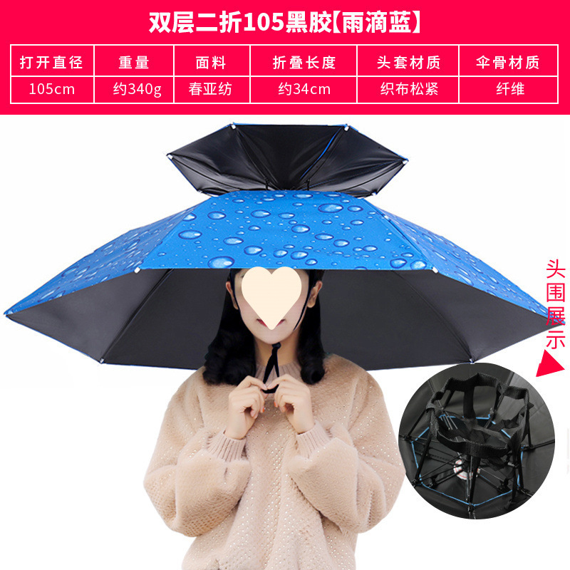 비가 오나 눈이 오나 착용할 수 있는 초대형 우산 모자, 낚시용 70% off겹 우산, 사진 촬영, 차 따기, 모자, 자외선 차단 우산