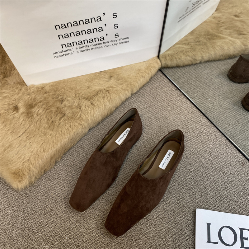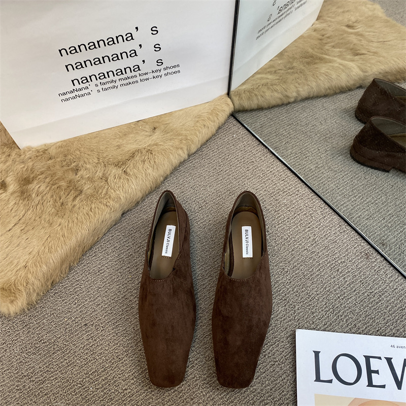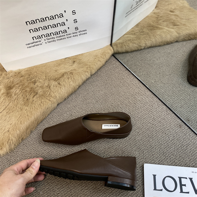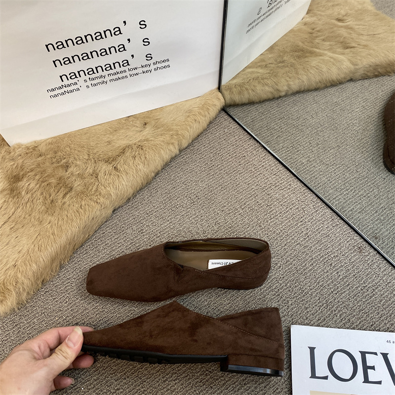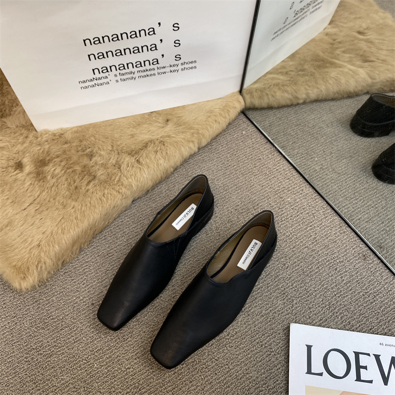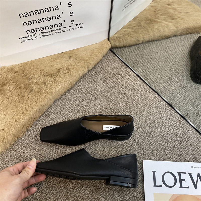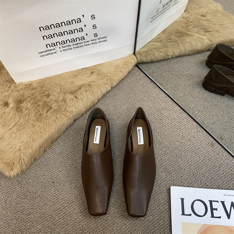 2024 봄과 가을 새로운 스타일 스퀘어 토 레오파드 프린트 로우 힐 슬립 온 신발 여성 한국어 버전 두꺼운 힐 작은 가죽 신발스토어 가기