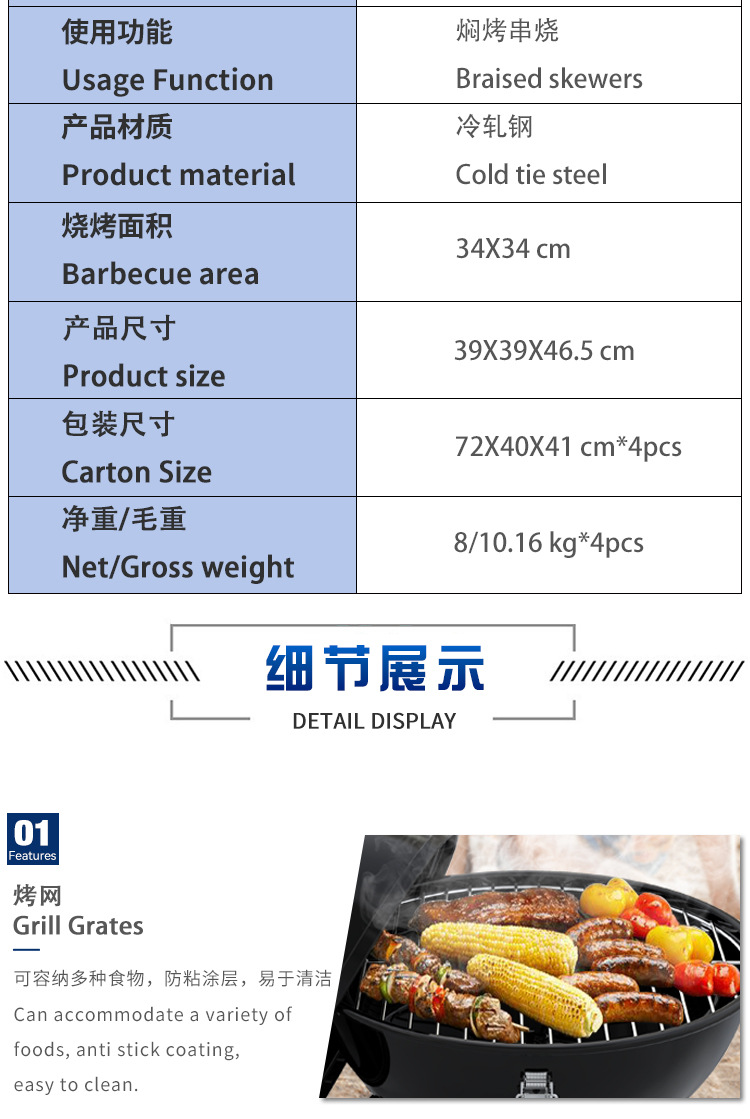 국경 간 미국식 저연 스토브 라운드 축구 스토브 바베큐 스토브 야외 캠핑 휴대용 바베큐 스토브 야외 그릴스토어 가기