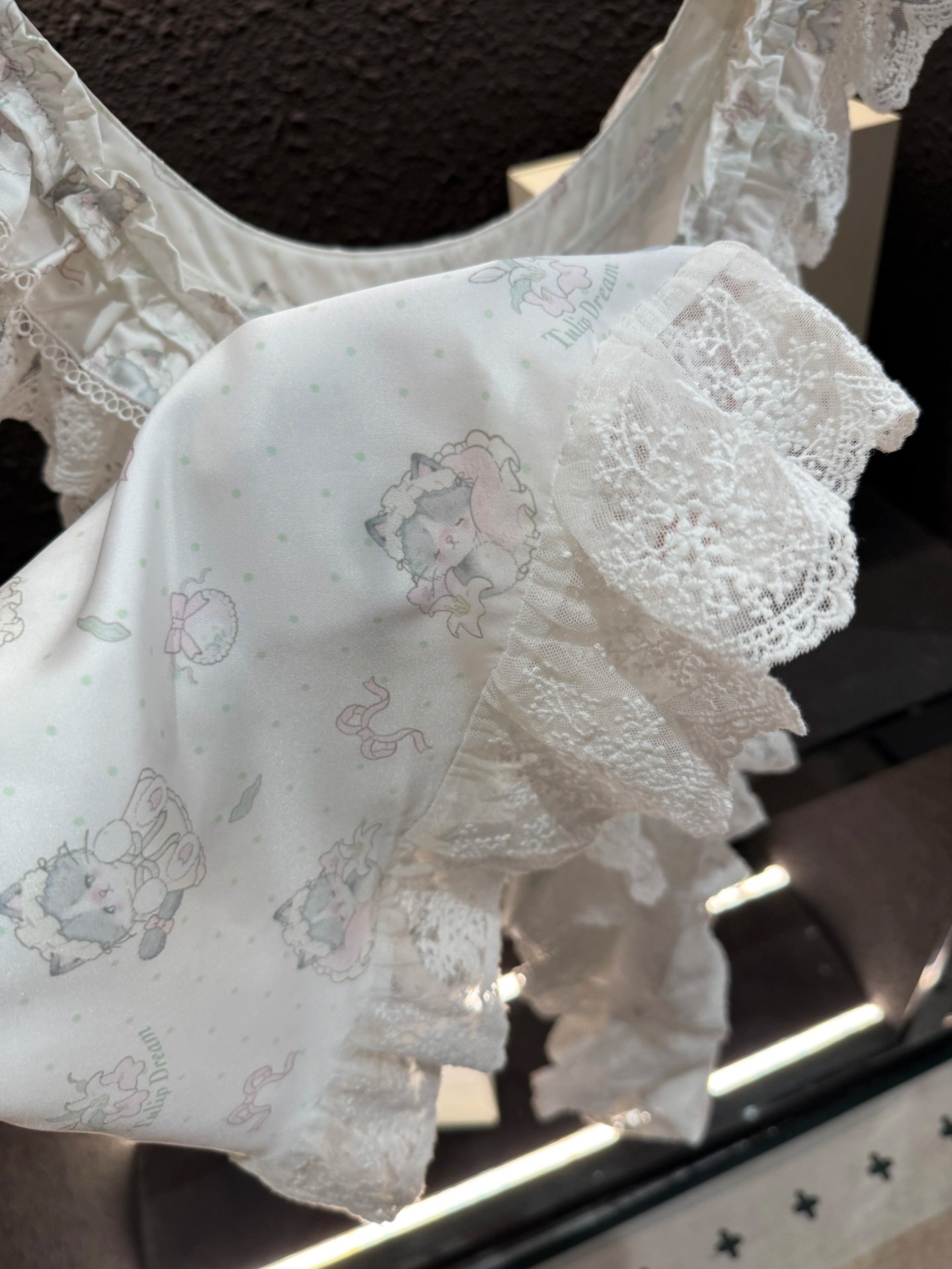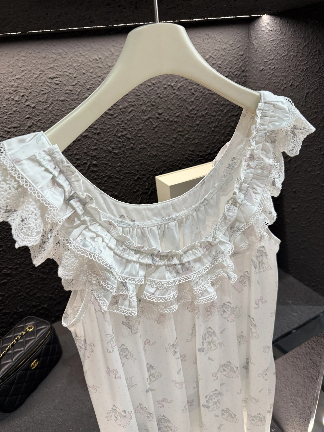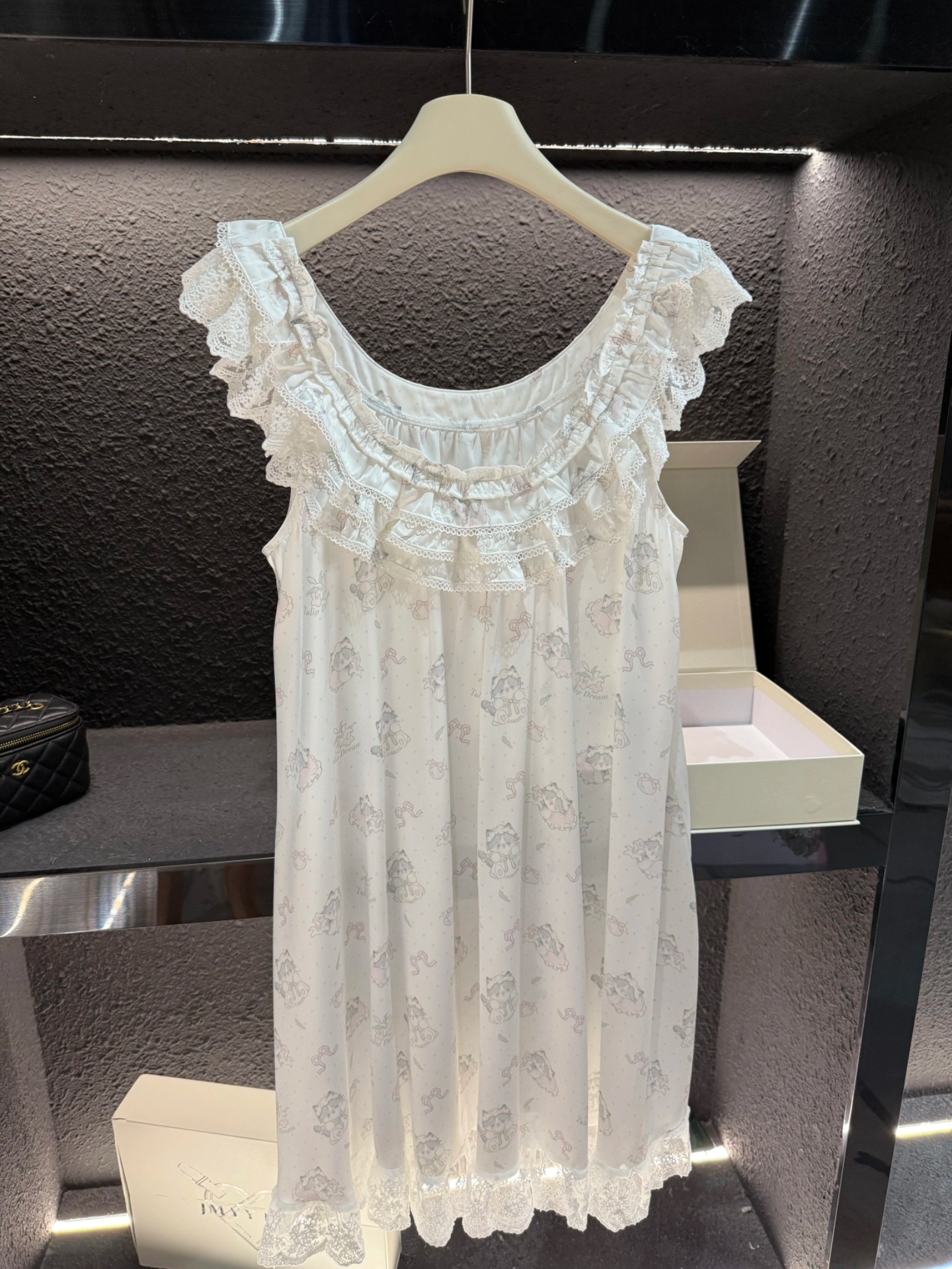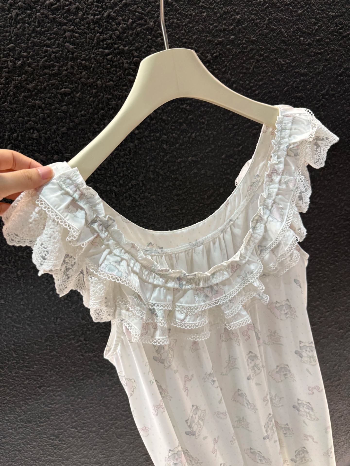 2025 새로운 고양이 레이스 느슨한 어깨 끈 귀여운 흰색 잠옷 어깨 끈은 조절할 수 없으며 환불 및 교환이 불가능합니다.스토어 가기