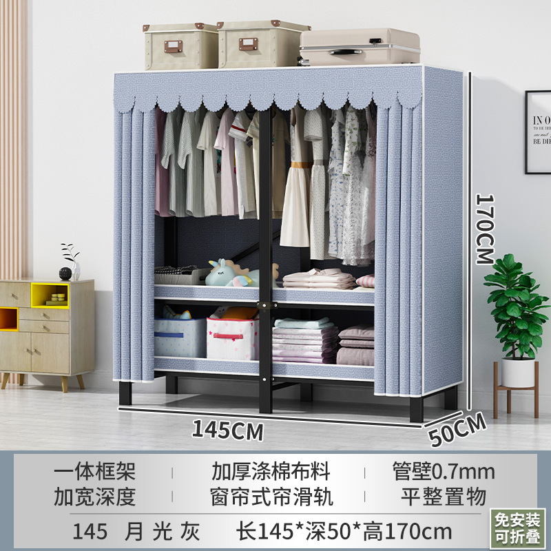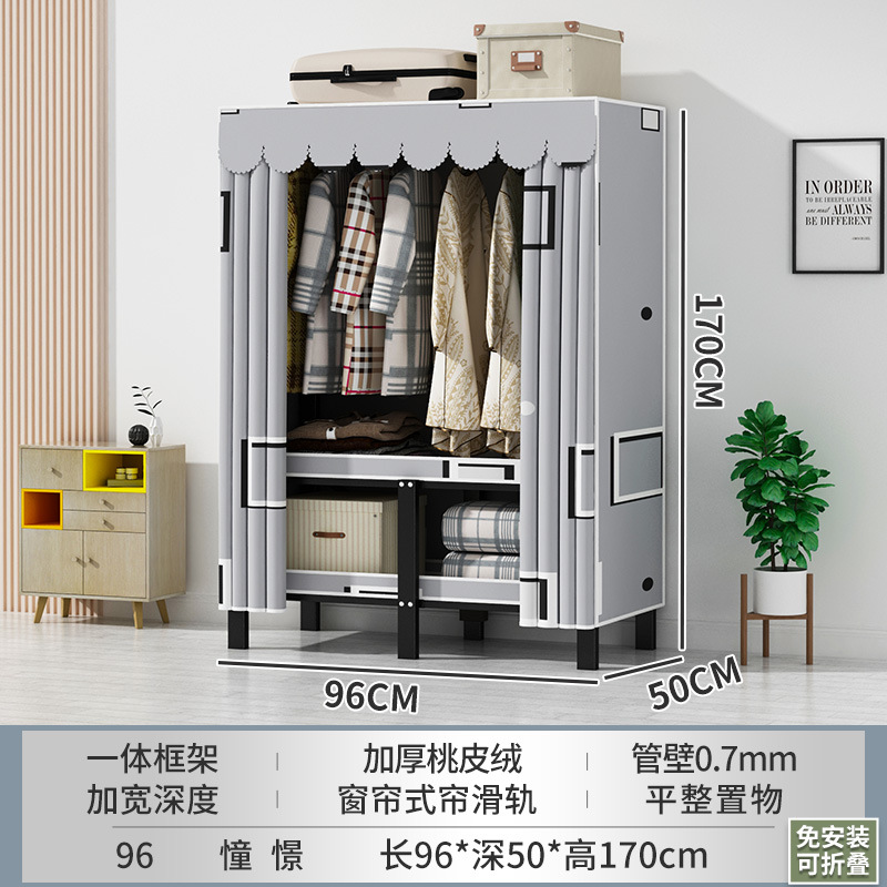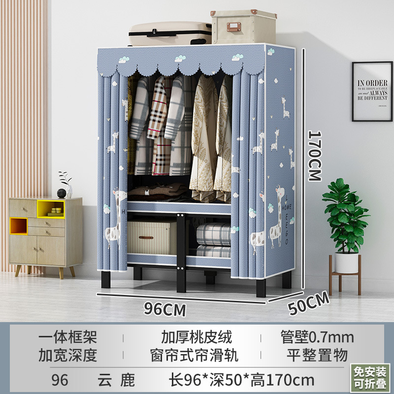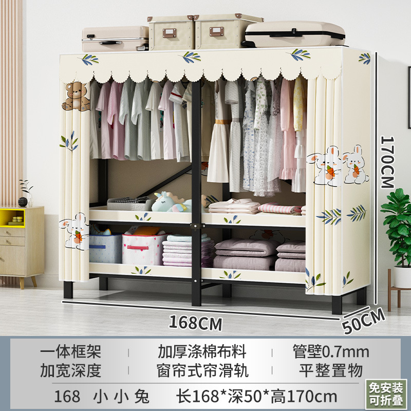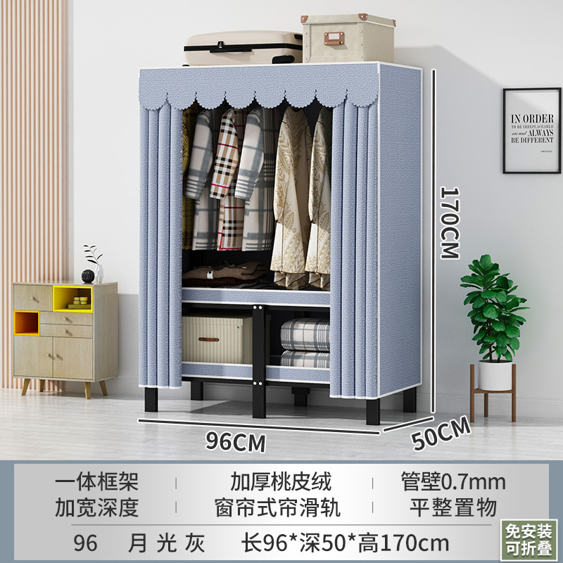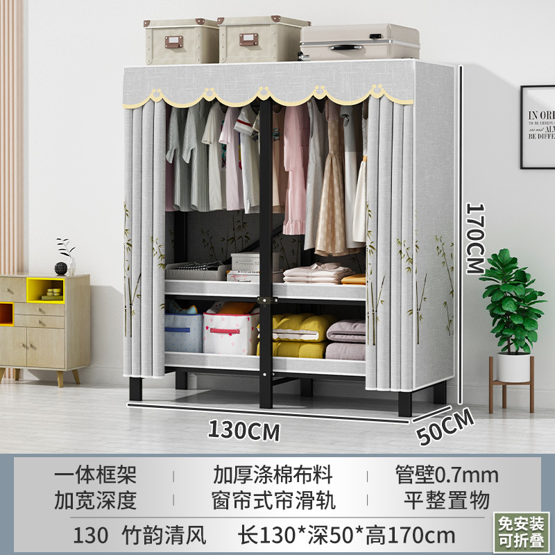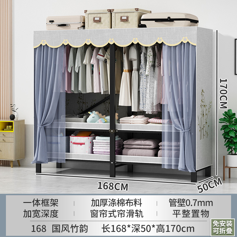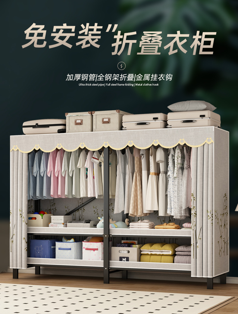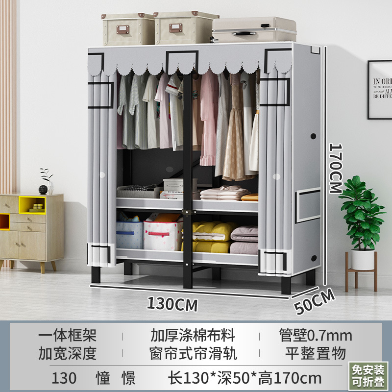 접이식 옷장 설치가 필요 없는 임대 주택 천 옷장 침실 튼튼하고 내구성이 뛰어난 간단한 옷장 강철 프레임 수납 옷장