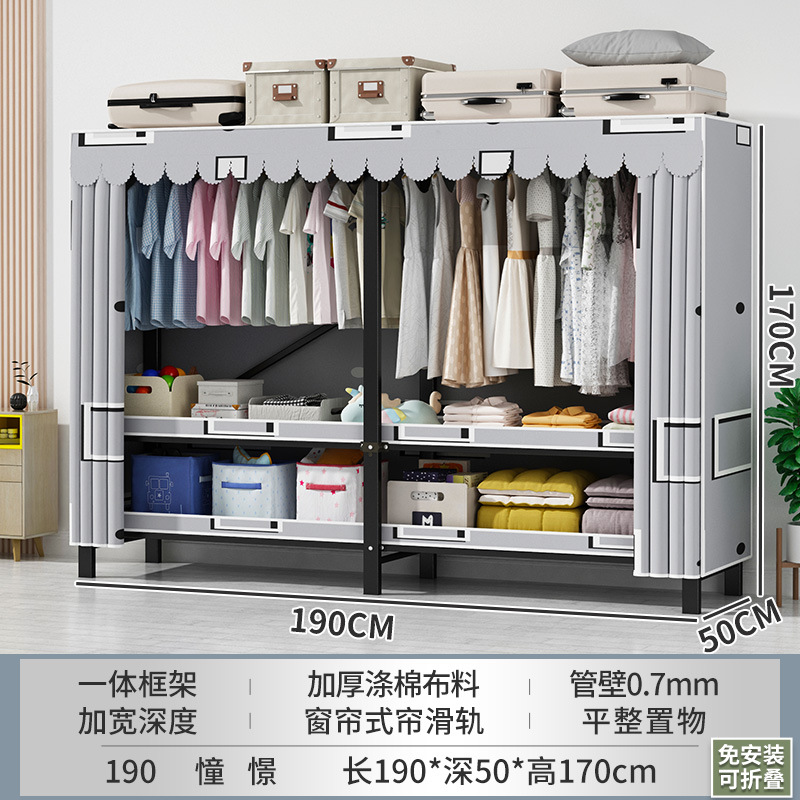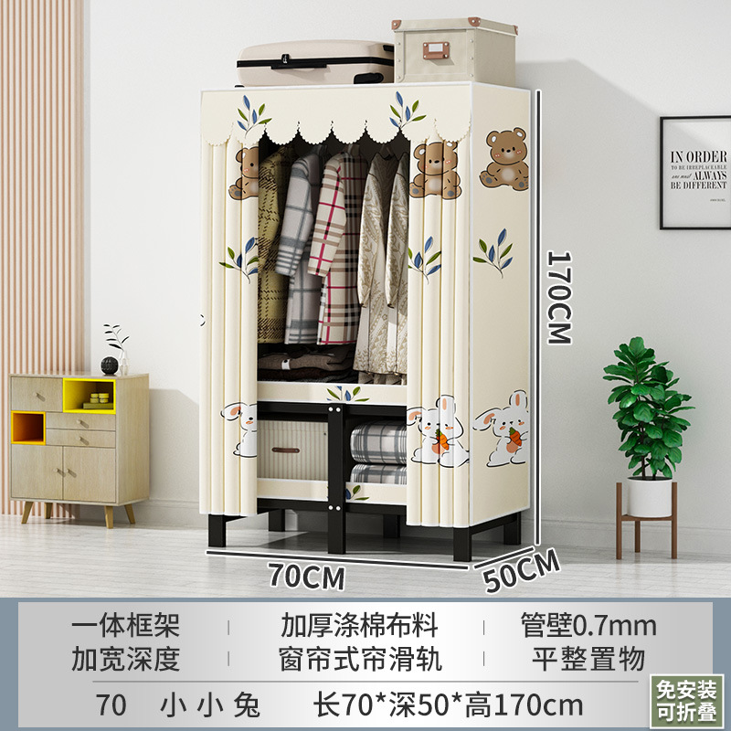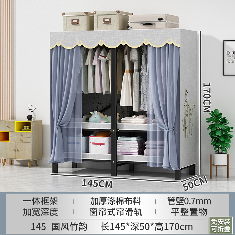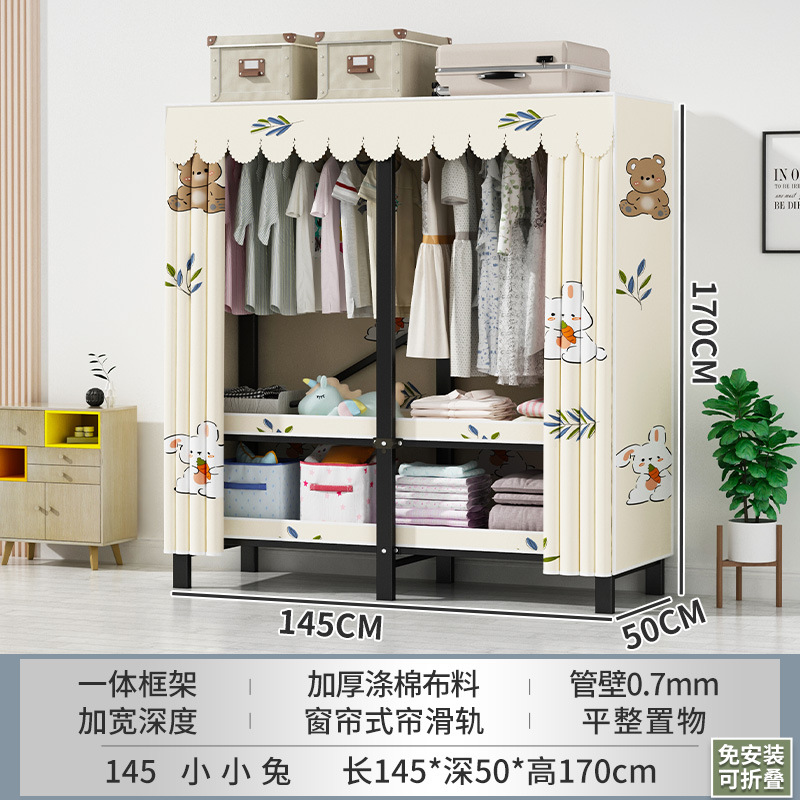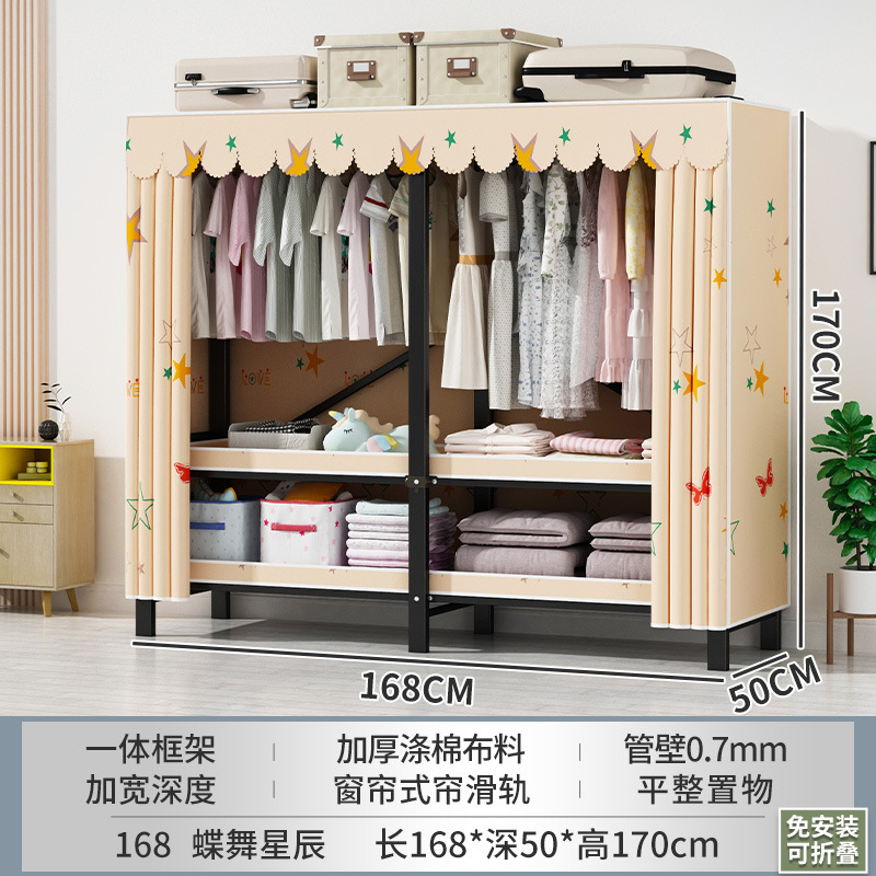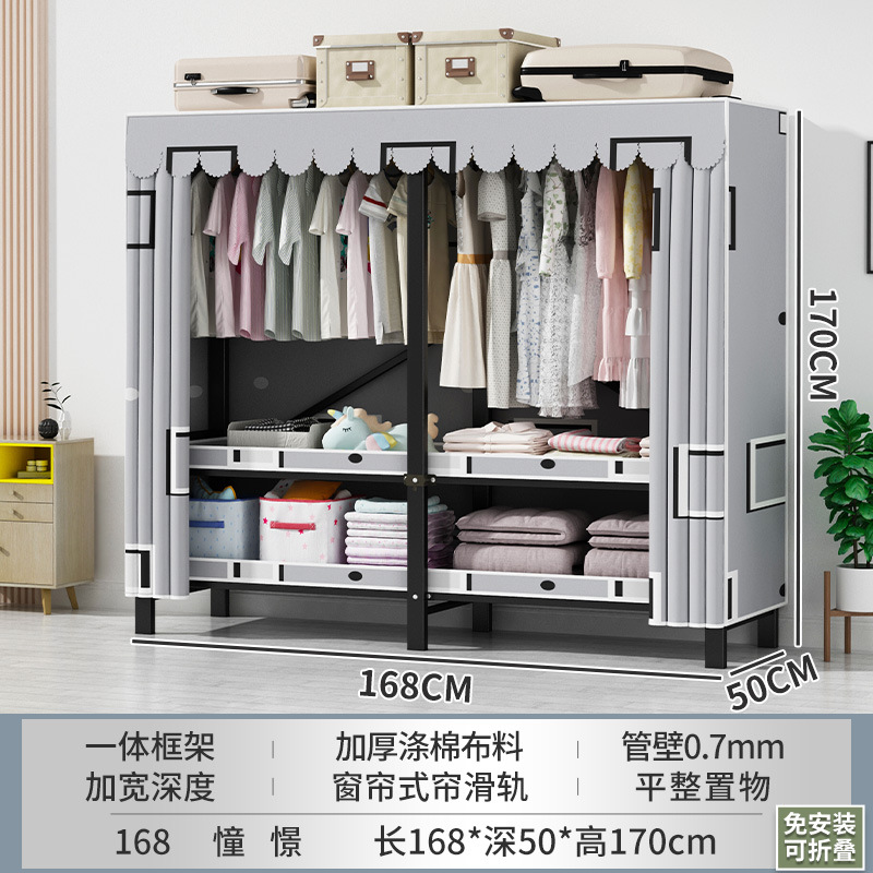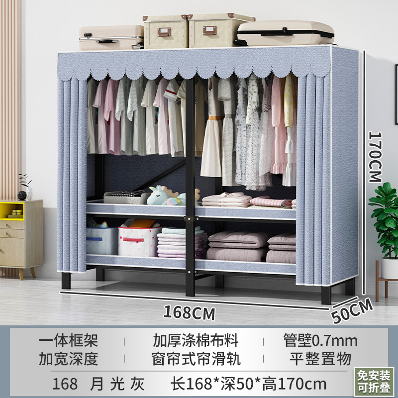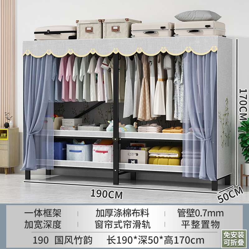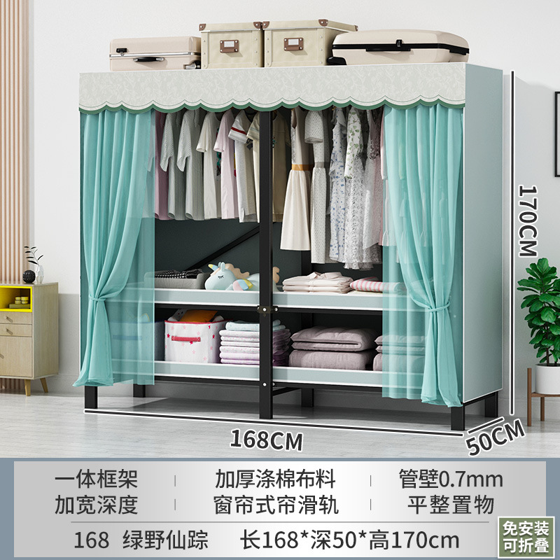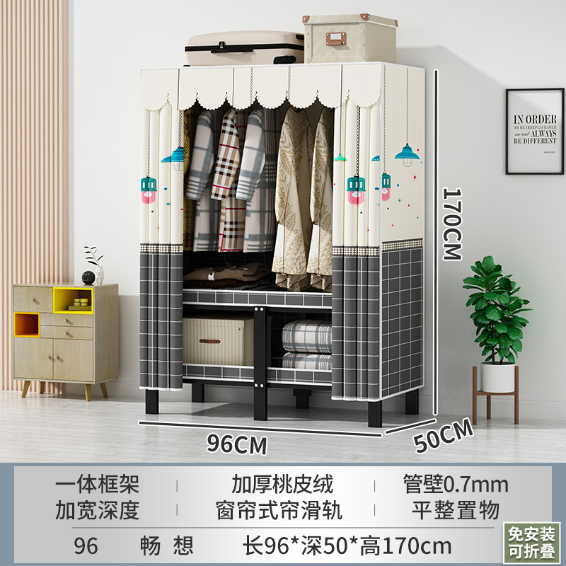 접이식 옷장 설치가 필요 없는 임대 주택 천 옷장 침실 튼튼하고 내구성이 뛰어난 간단한 옷장 강철 프레임 수납 옷장